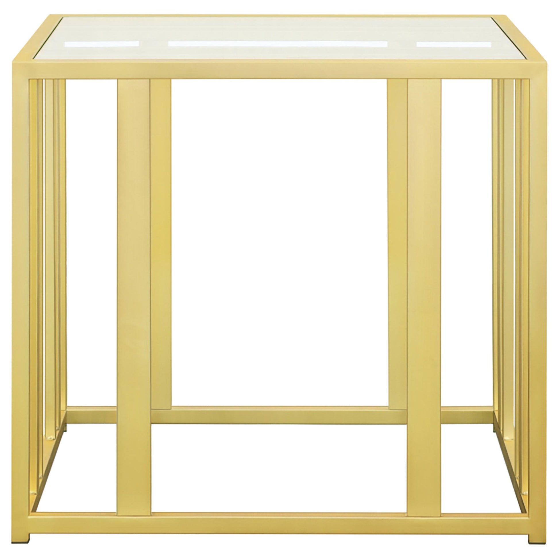 This coffee table set includes a rectangular coffee table and a matching end table, both featuring tempered glass tops and geometric bases crafted from heavy-gauge metal. The open-frame design exudes modern elegance while offering durability and functionality. Scratch-resistant materials ensure lasting quality, making the set ideal for organizing essentials or displaying decor. Its cohesive design provides a sleek, contemporary look for any living room.