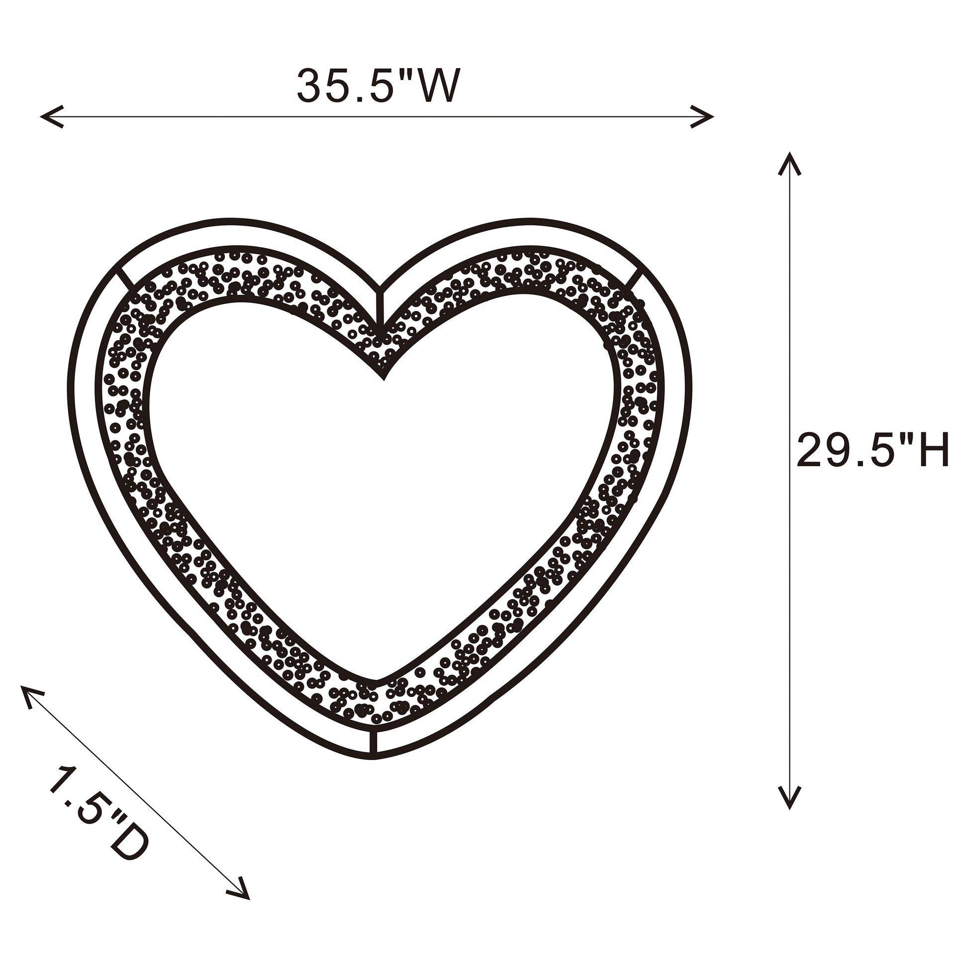 This heart-shaped wall mirror adds sparkle and function to glam-inspired spaces. Framed with mirrored glass and outlined by faceted acrylic crystal inlay, it delivers high-shine appeal. Integrated LED lighting enhances visibility for makeup, grooming, or daily routines. Designed for wall mounting, this decorative mirror combines charm and practicality—ideal for bedrooms, vanities, or dressing areas needing both style and illumination.