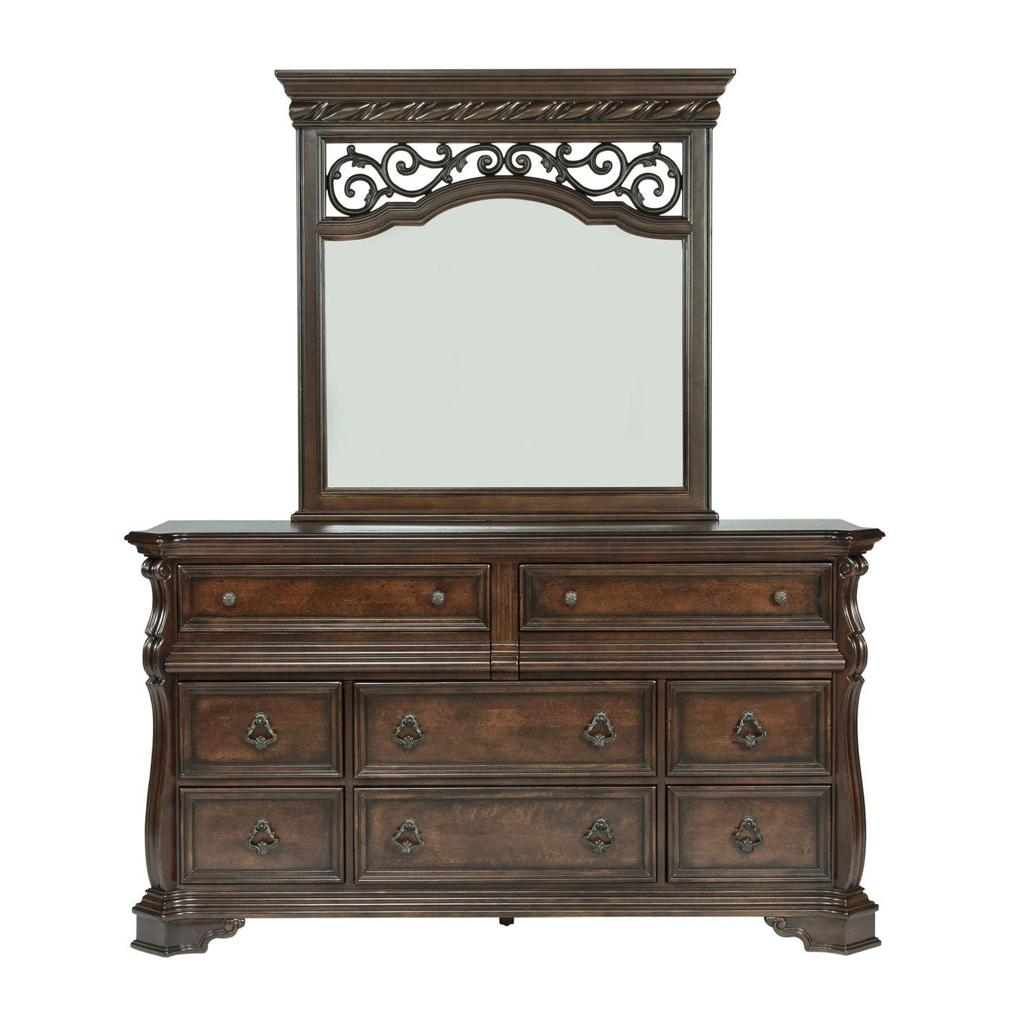 Add a statement to your room with the Arbor Place landscape mirror. This piece features gorgeous burnished brass scrolled metal inserts, unique rope twist moldings, and beveled glass that effortlessly frames the mirror, whilst adding dimension.