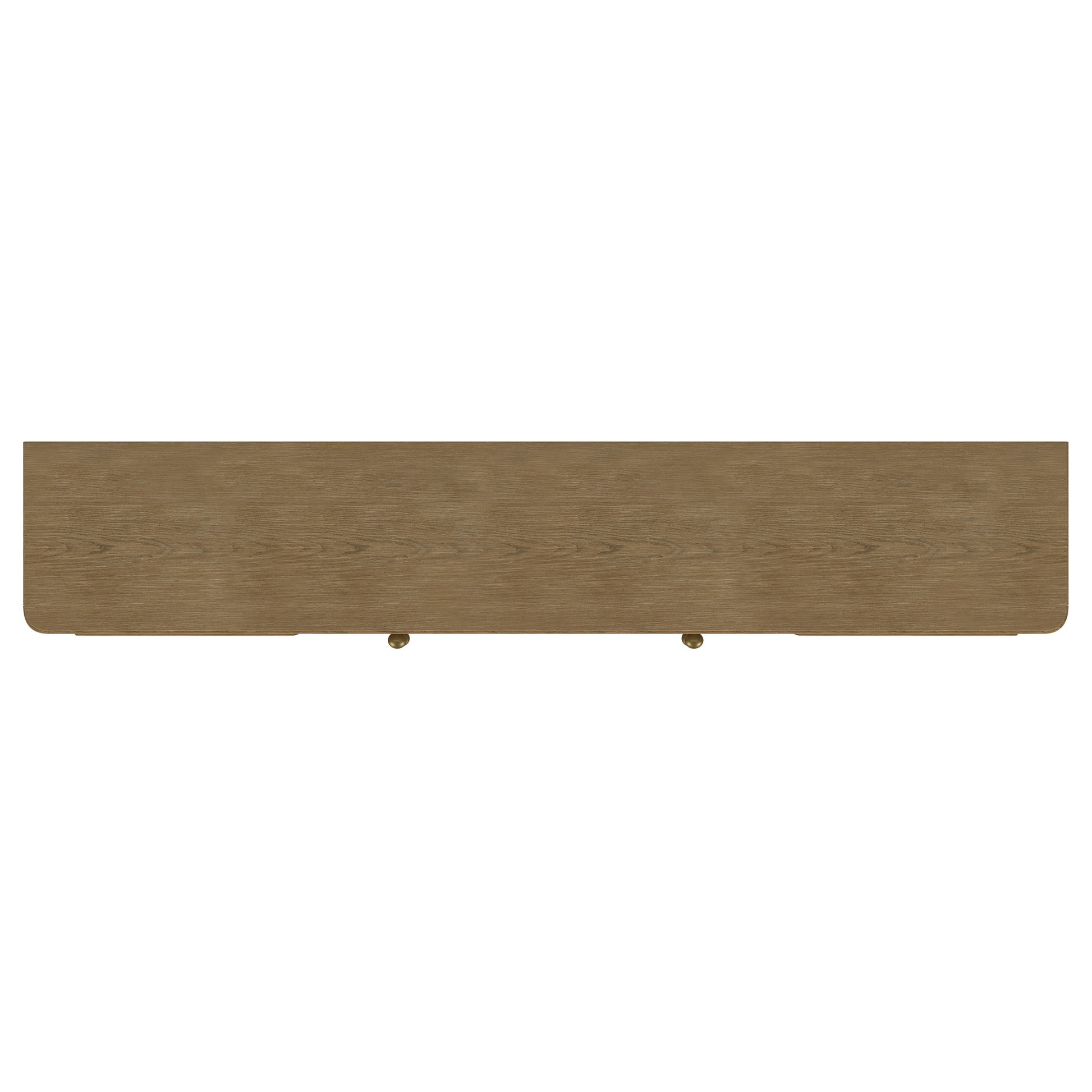This refined entertainment unit transforms your living room with artisanal detail. Accommodating up to 85-inch displays, this TV stand integrates rubberwood, engineered wood, white ash veneer, and rattan. A modern neutral finish and aged brass legs exude timeless appeal. With drawers and hidden storage, it excels as a media console or TV shelf. A versatile TV console and media stand, it ensures an elegant entertainment center and functional media cabinet.