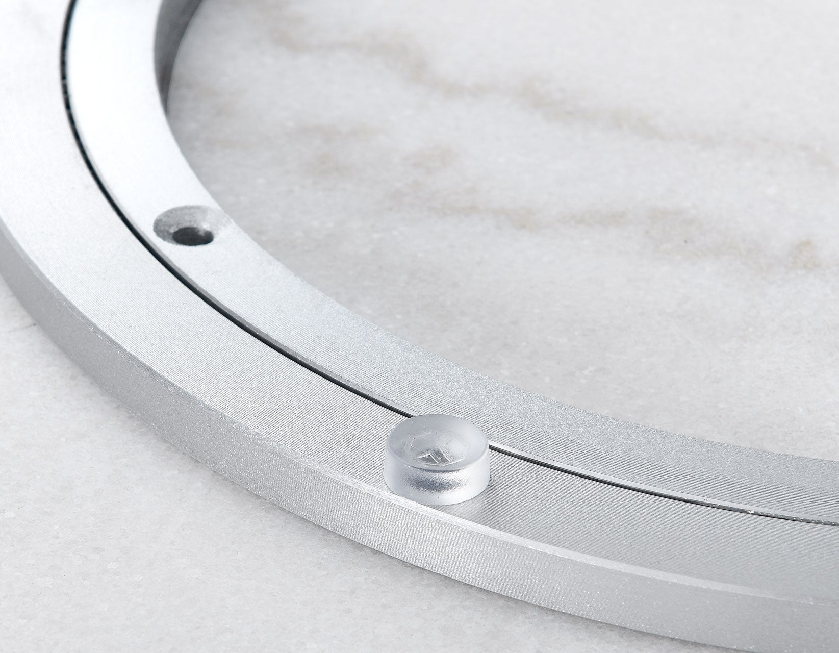 A beautiful and natural accent on any table, the Arken 18-inch white marble lazy Susan offers easy and elegant access to dining items for everyone with a smooth and rotating surface. The beauty of marble shines through in this accent that can be used with large round or square marble or wood tables. Fused by nature, each Arken Lazy Susan is unique so you can rest assured yours is one-of-a-kind.