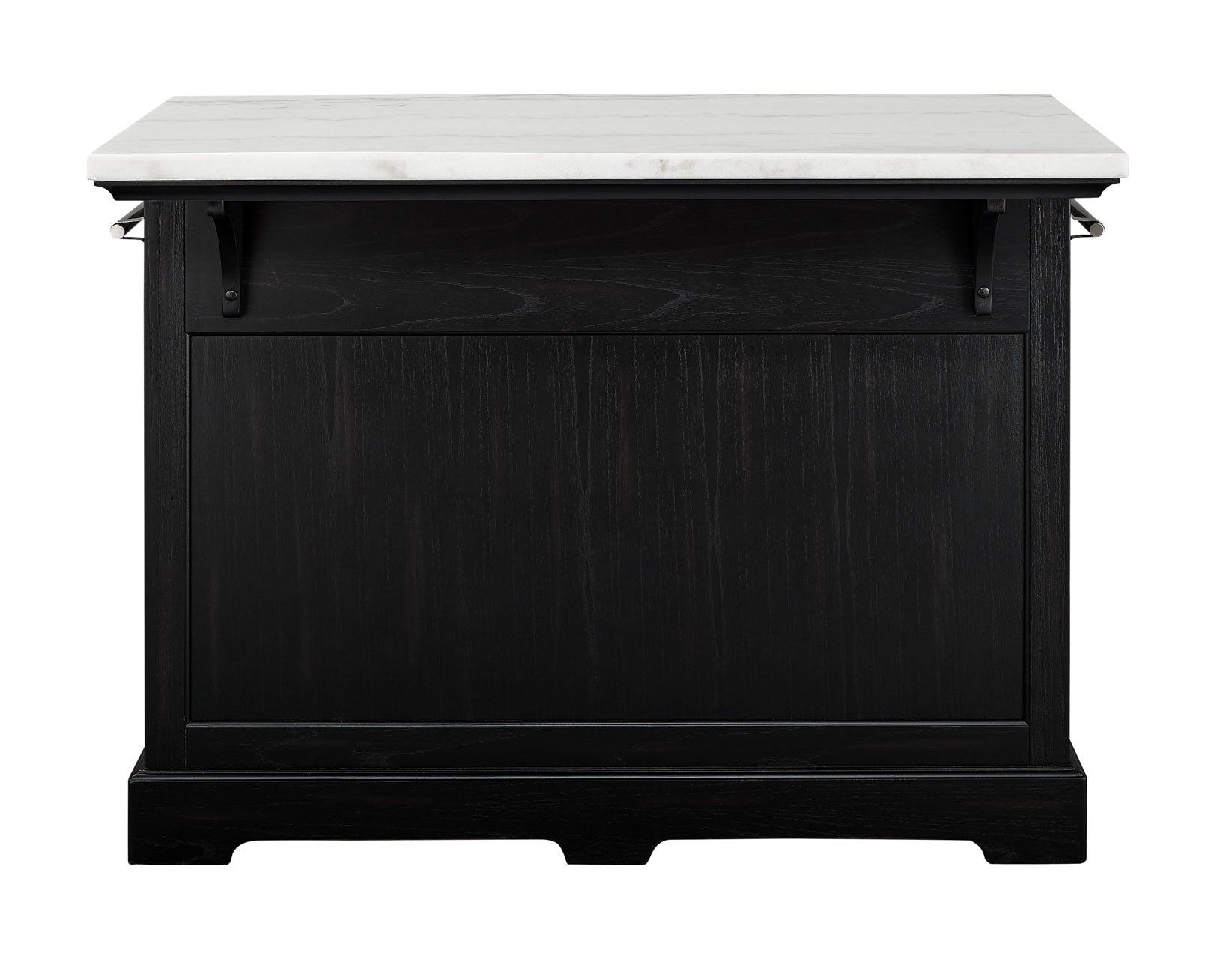 As comfortable in a French bistro as it is in your own kitchen, the Aspen Kitchen Island has vintage styling with a modern edge. This beauty is bound to become your kitchen hub with it beautiful long-lasting white marble top and shelf that can accommodate the matching nailhead trim counter stools. The pewter cup hardware and towel rack accent the wine rack and storage you are sure to love!