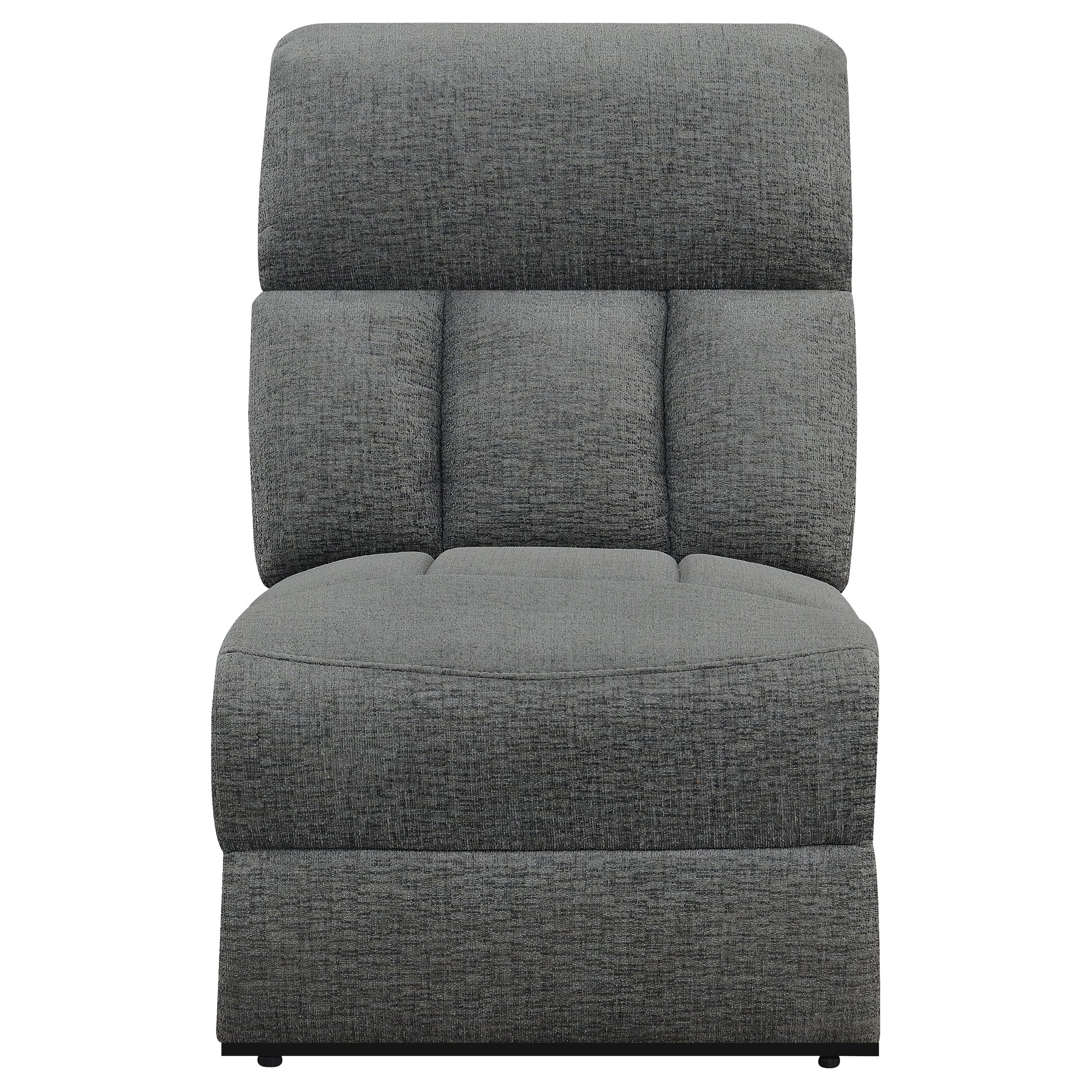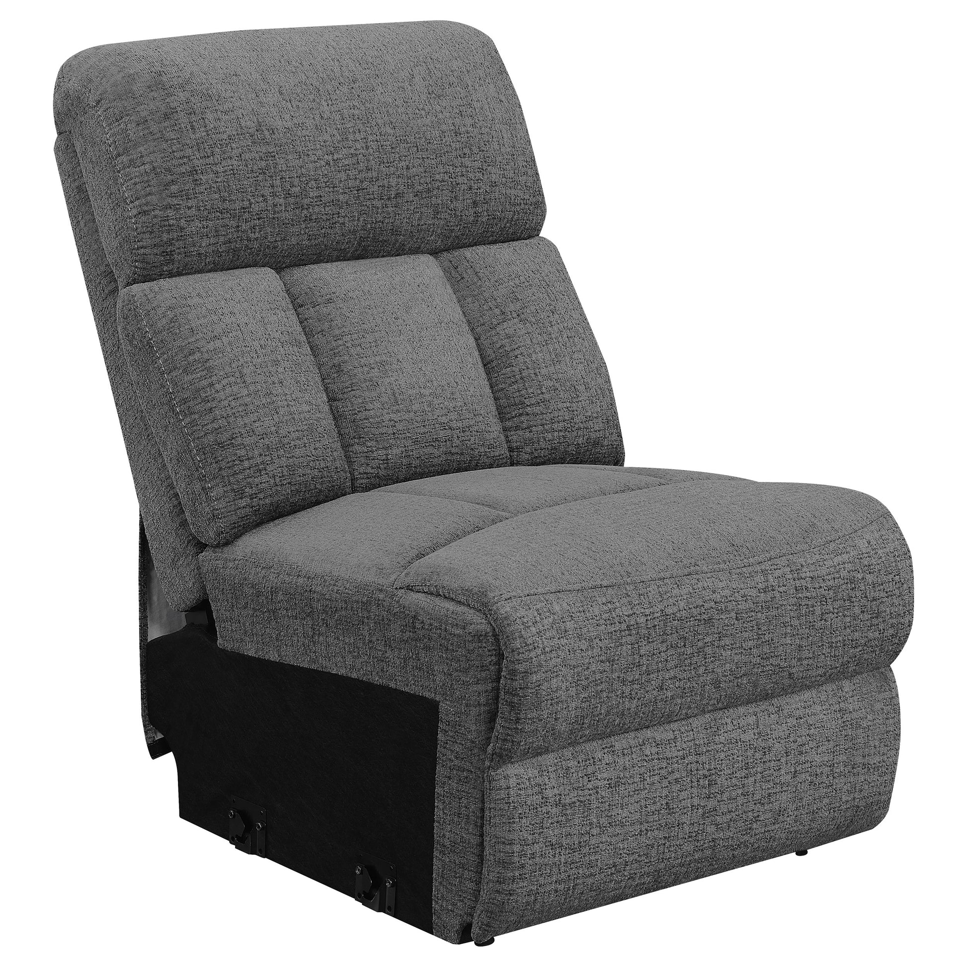 Design a living room built for comfort and relaxation around this transitional reclining sofa. Offering dual recliners operated with a side pull lever, the sofa encourages rest and rejuvenation in inviting style. Charcoal upholstery delivers a smooth, soft look and feel, while plush cushions are both supportive and comfortable for lounging. Pillowtop armrests are ideal for curling up on a cool evening or indulging in a quick afternoon nap. Tufting accents add support and structure to plush cushions while creating a dimensional look that works in your living room.
