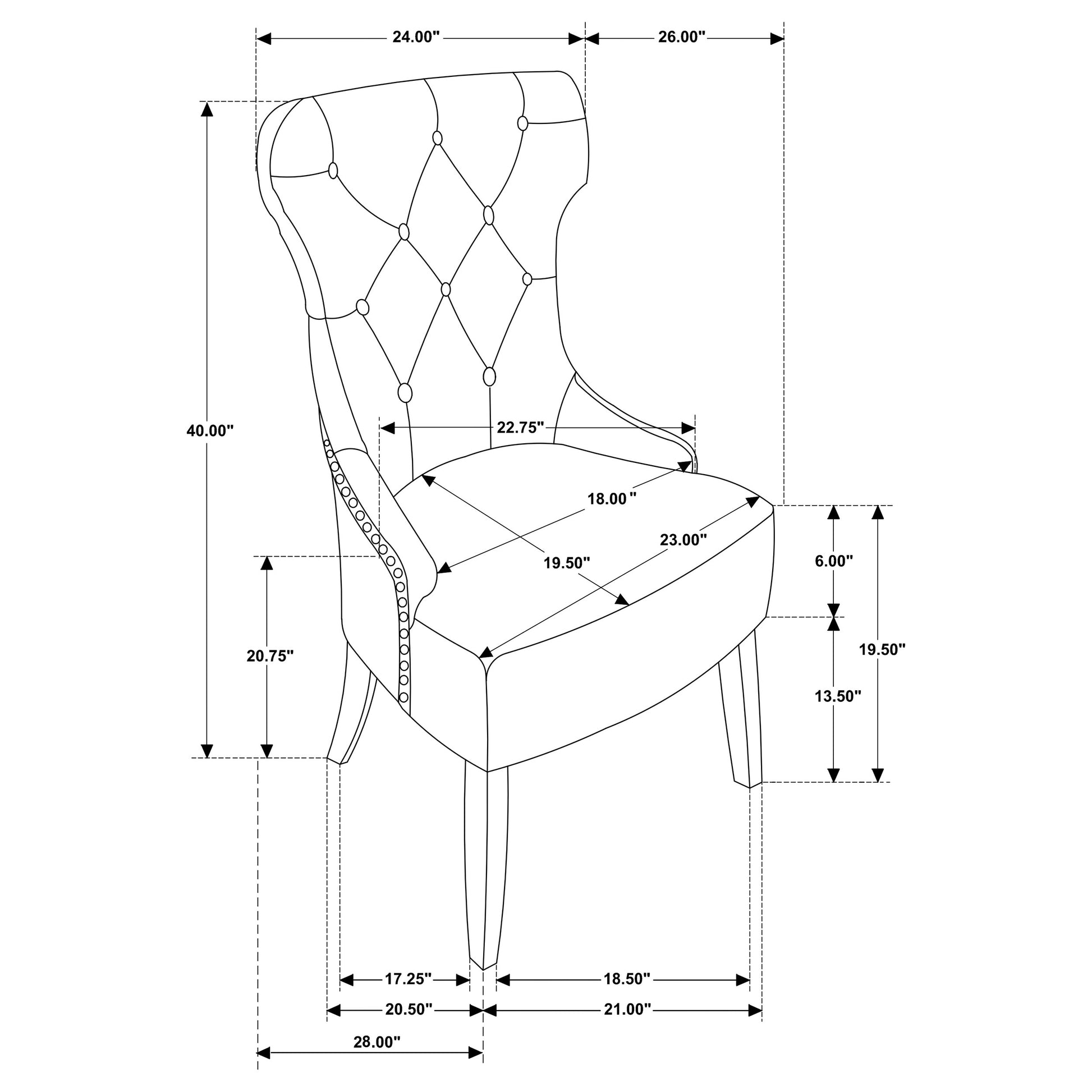 • Modern tufted dining chair creates a rich, warm ambiance with a wingback profile