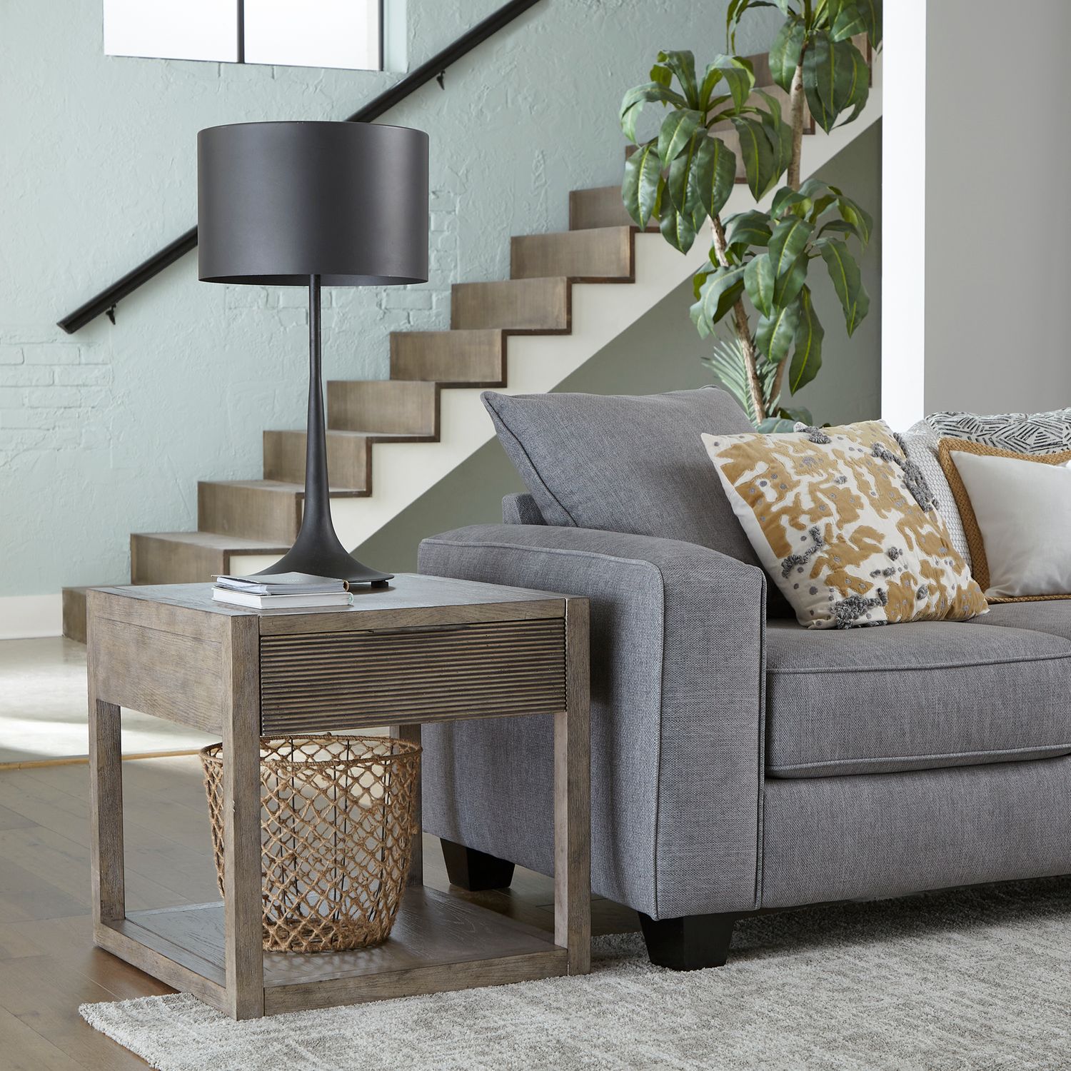 Furnish your home, furnish your life with the Bartlett Field end table. Crafted with excellence using rubberwood solids with split heart white oak veneers, this end table features a Dusty Taupe finish. The end table has one full extension drawer with a reeded textured drawer front that is accented with a custom Antique Pewter finger pull hardware. The bottom shelf is great for extra storage or display items. Square block legs along with clean lines add for a contemporary feel. Convey energy and imagination with the Bartlett Field end table.