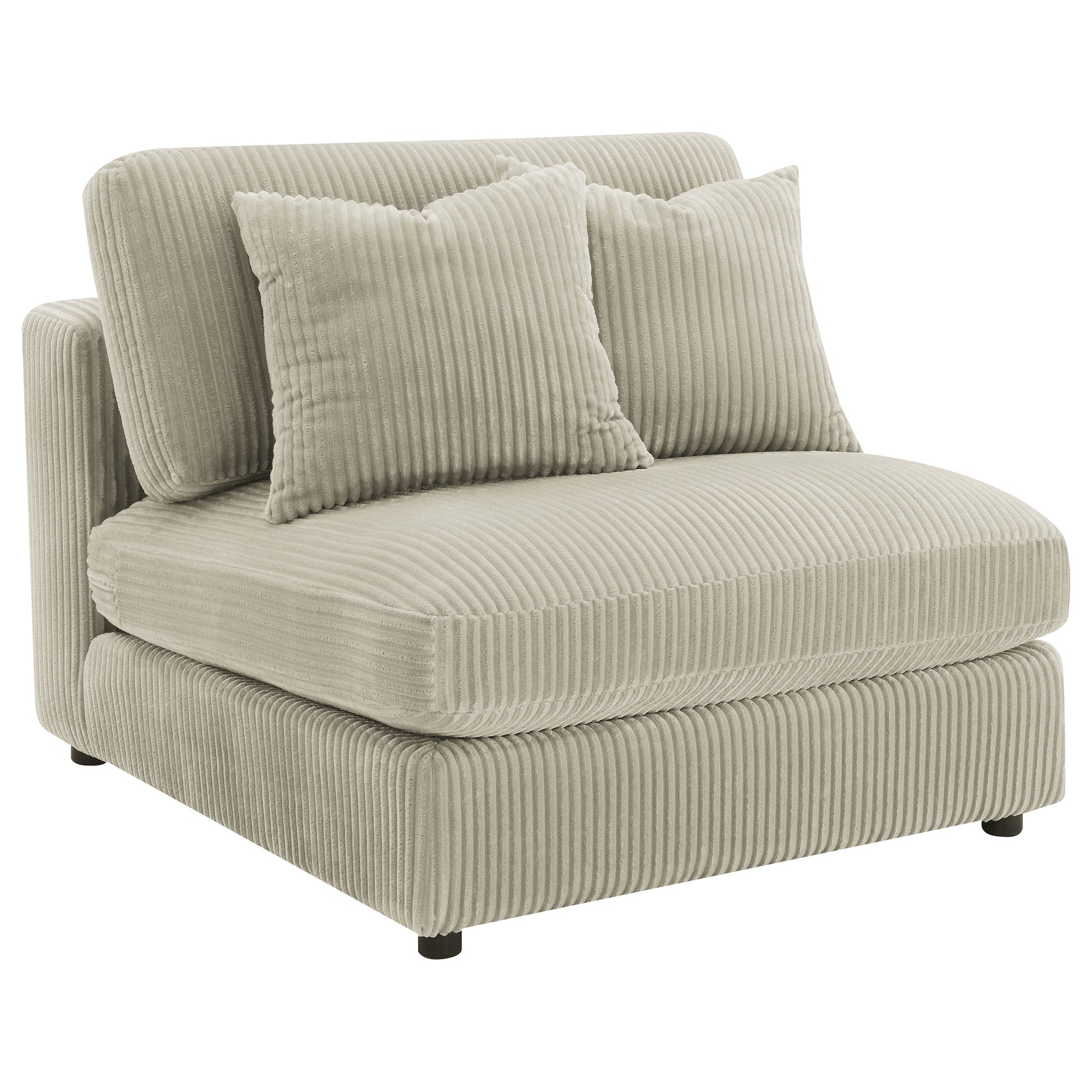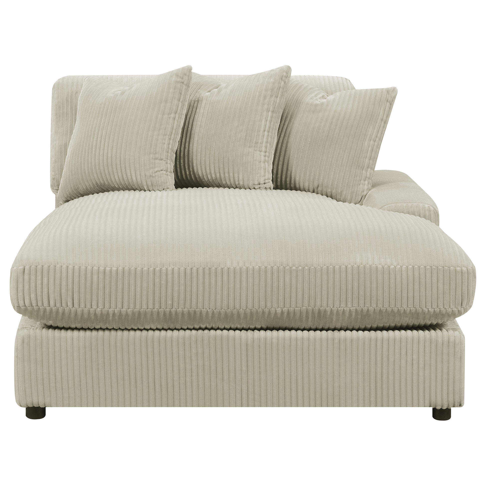Wrap yourself in the inviting allure of this three-piece sectional, where timeless design meets modern versatility. The additional armless chair in the center expands your lounge space, creating a sanctuary of comfort and style. Draped in luxurious, wide corduroy fabric, this sectional whispers sophistication in either fog or sand hues. Its reversible chaise can adapt to any space, ensuring a perfect fit for your home's layout. Let this sofa be the canvas for your relaxation, crafted for those who appreciate both form and function.