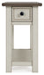 | Details | Made of wood, white oak veneers and engineered wood, Two-tone (weathered gray and antique white) finish, Chairside end table features plank-styled top, Smooth-gliding drawer perfect for holding remotes and more, Integrated 110V power supply with dual USB charging ports, Black faceted hardware, Assembly required | |