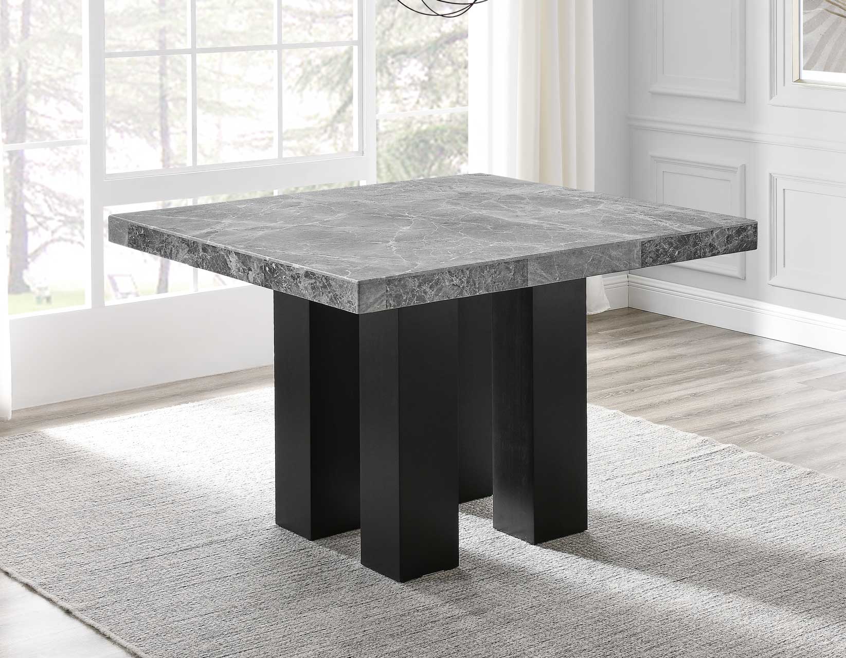 Elegant dining with a modern twist, Camila offers beautiful gray marble counter dining.