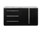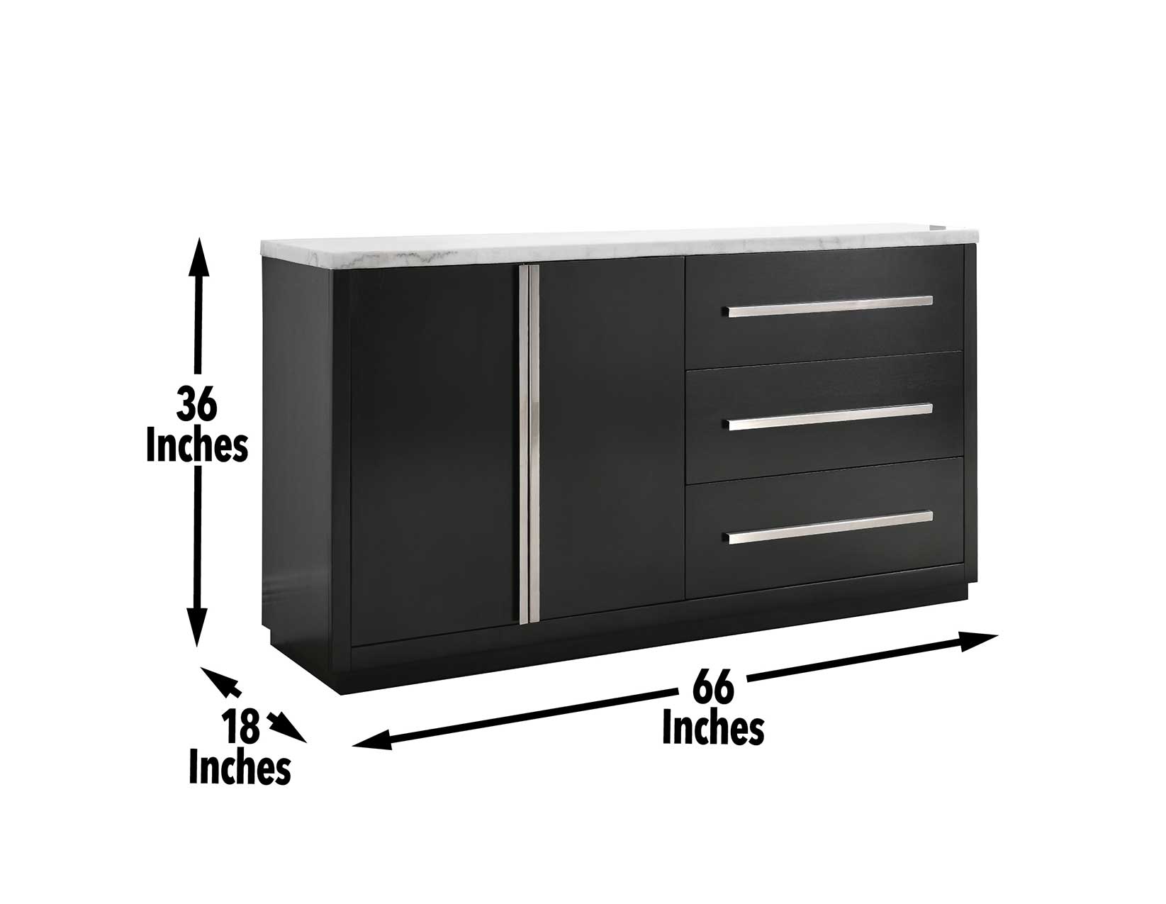 A clean modern look and asymmetrical design make the Camila Server perfect for any contemporary styled room. Generous storage add function to the fashion forward design of a storage piece that is as comfortable in a Home Office setting as it is in a Dining room. A gray marble top blends with the ebony finished wood in a neutral palette that stands out for style.