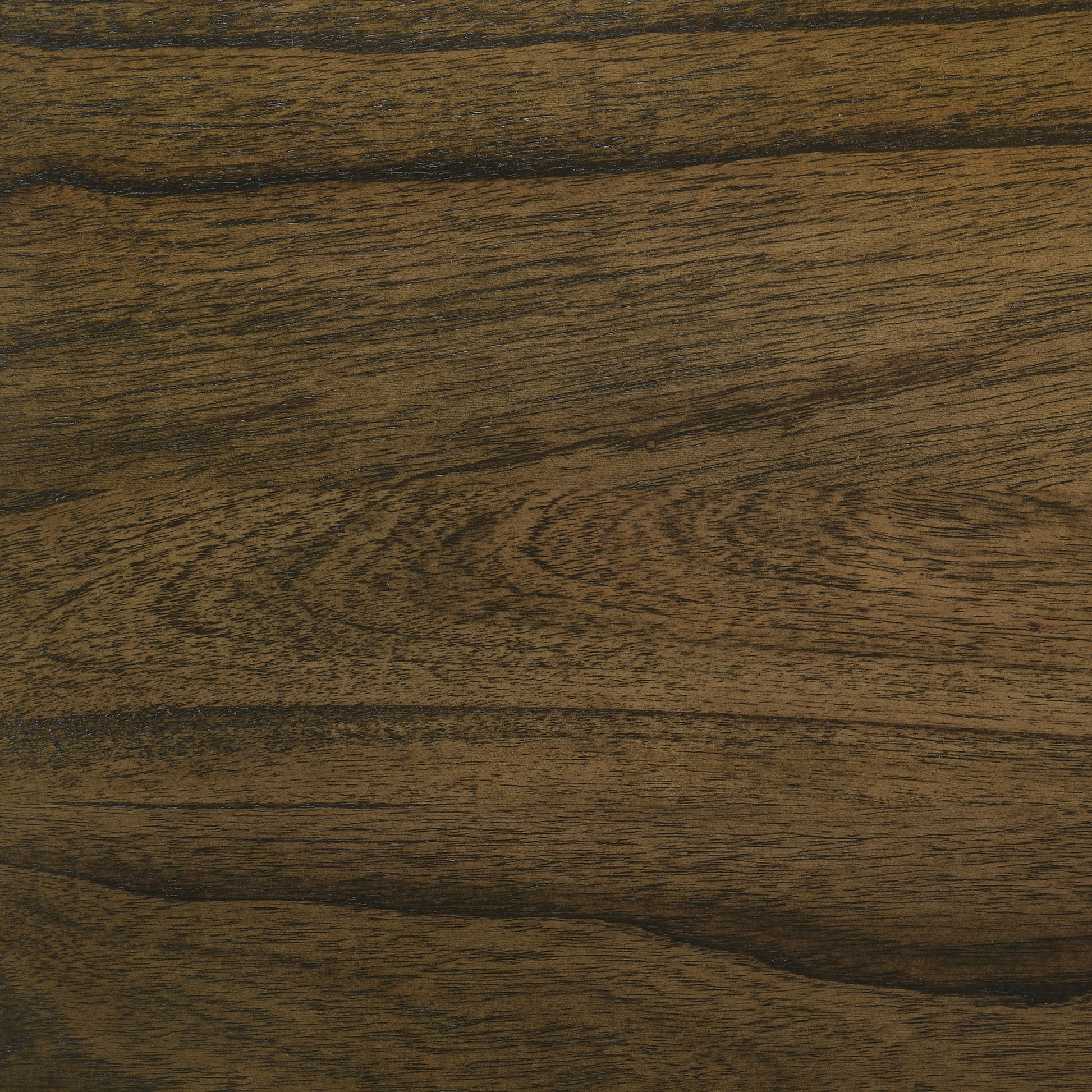 • Table crafted from engineered wood, hardwoods, and finished with mindi veneer