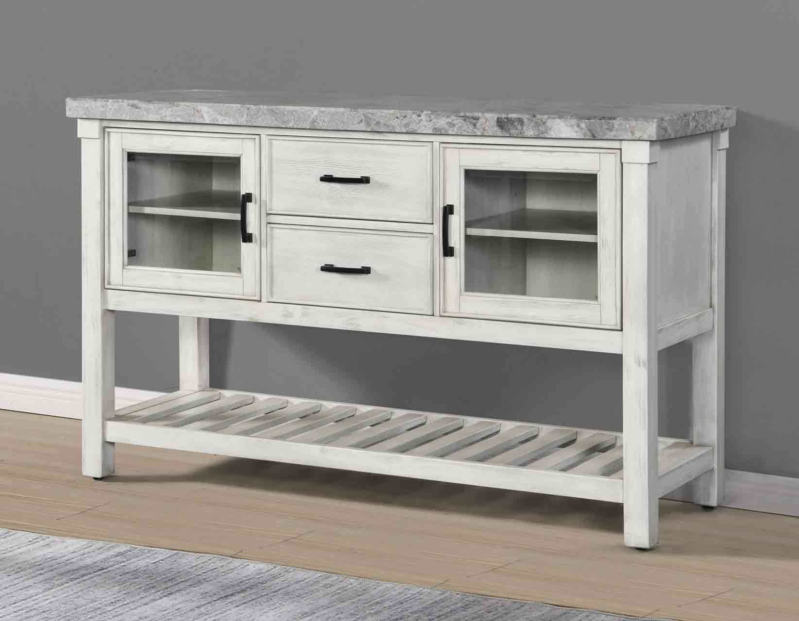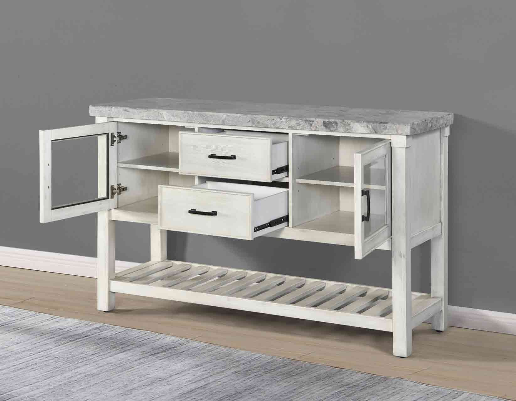 Clean lines and simple sophistication are the hallmarks of the Canova gray marble dining set. A Cathedral White wood finish pairs with gray marble tops to create a rustic yet elegant design that is beautiful in classic, contemporary or farmhouse setting. Gray velvet chairs are easy-to-clean and add comfort to the dining collection. The available Server adds utility to this charming marble set that comfortably seats six for dinner.