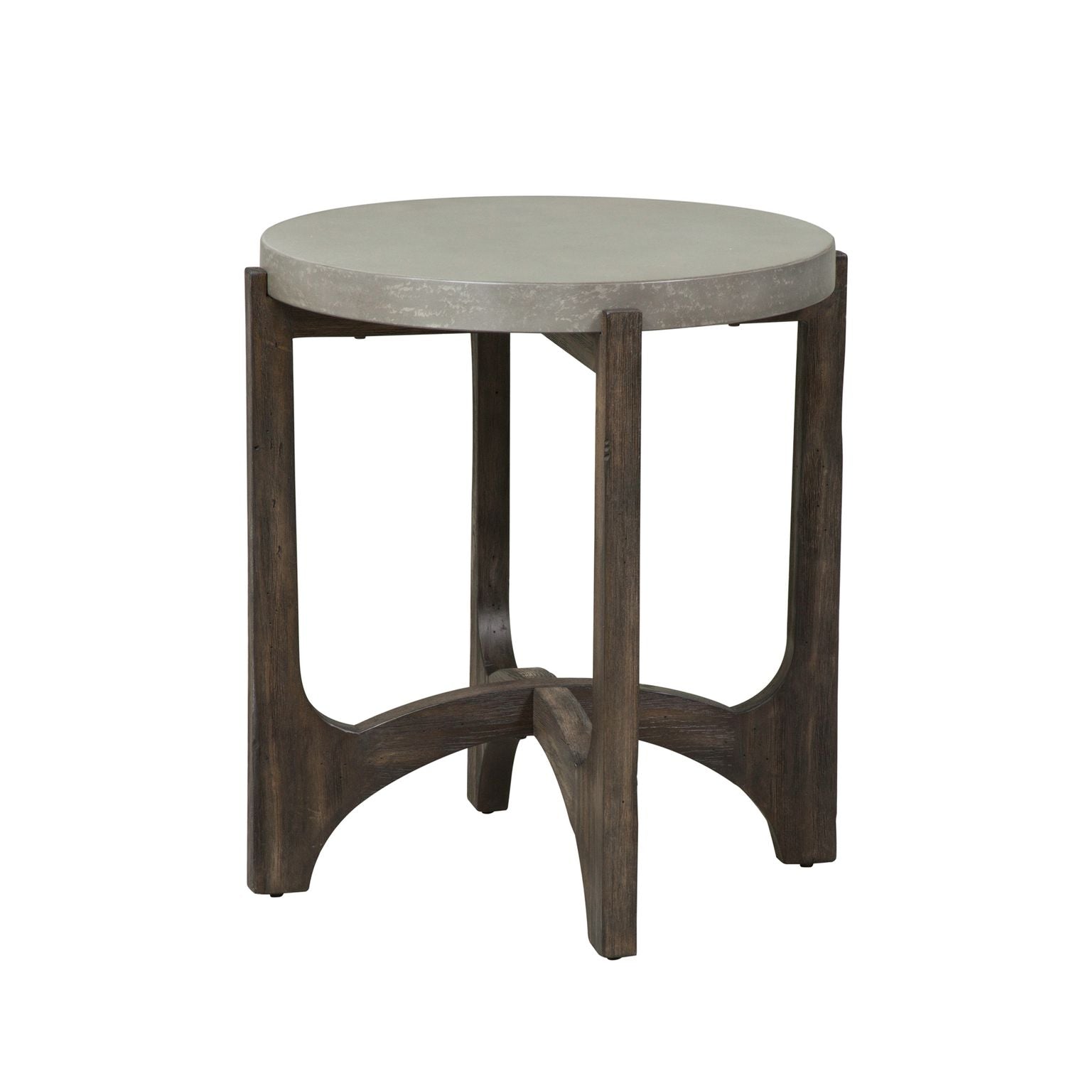 Offer an urban element to your room with Cascade collection. Crafted of eucalyptus and birch solids with concrete composite tops, features a wire brush rustic brown finish, appealing soft shapes catering to the contemporary feel, anchored by interlocking shaped legs. The mixed media in this group works with many design styles from rustic to contemporary. Kit consists of one round cocktail table and two end tables.