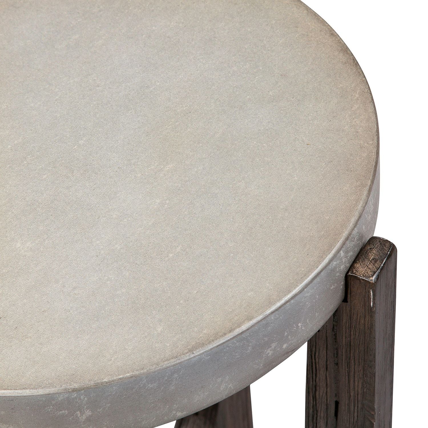 Accent your space with the urban living Cascade chair side table. Crafted of eucalyptus and birch solids and concrete composite tops, this piece features a wire brush rustic brown finish, appealing soft shapes catering to the contemporary feel, anchored by interlocking shaped legs. Cascade is the perfect collection for a modern loft.