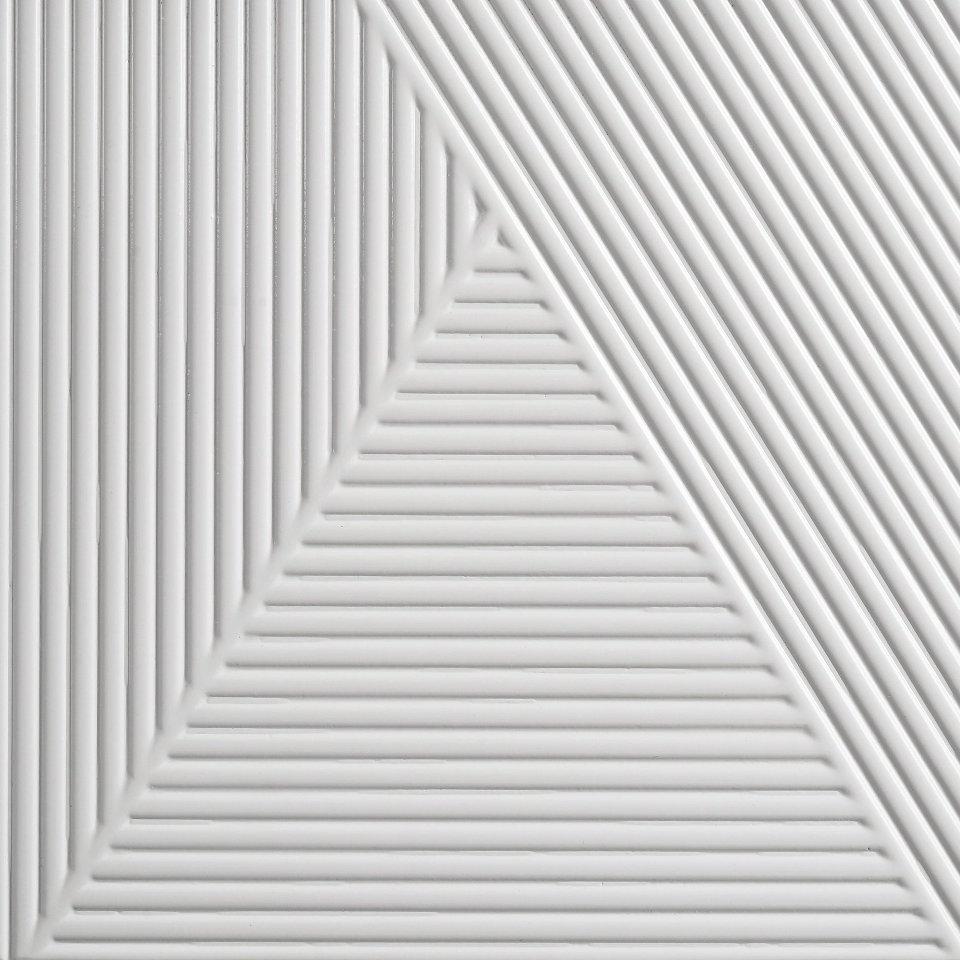 • Chrome-finished drawer pulls complement the bold dimensional pattern and sleek surface