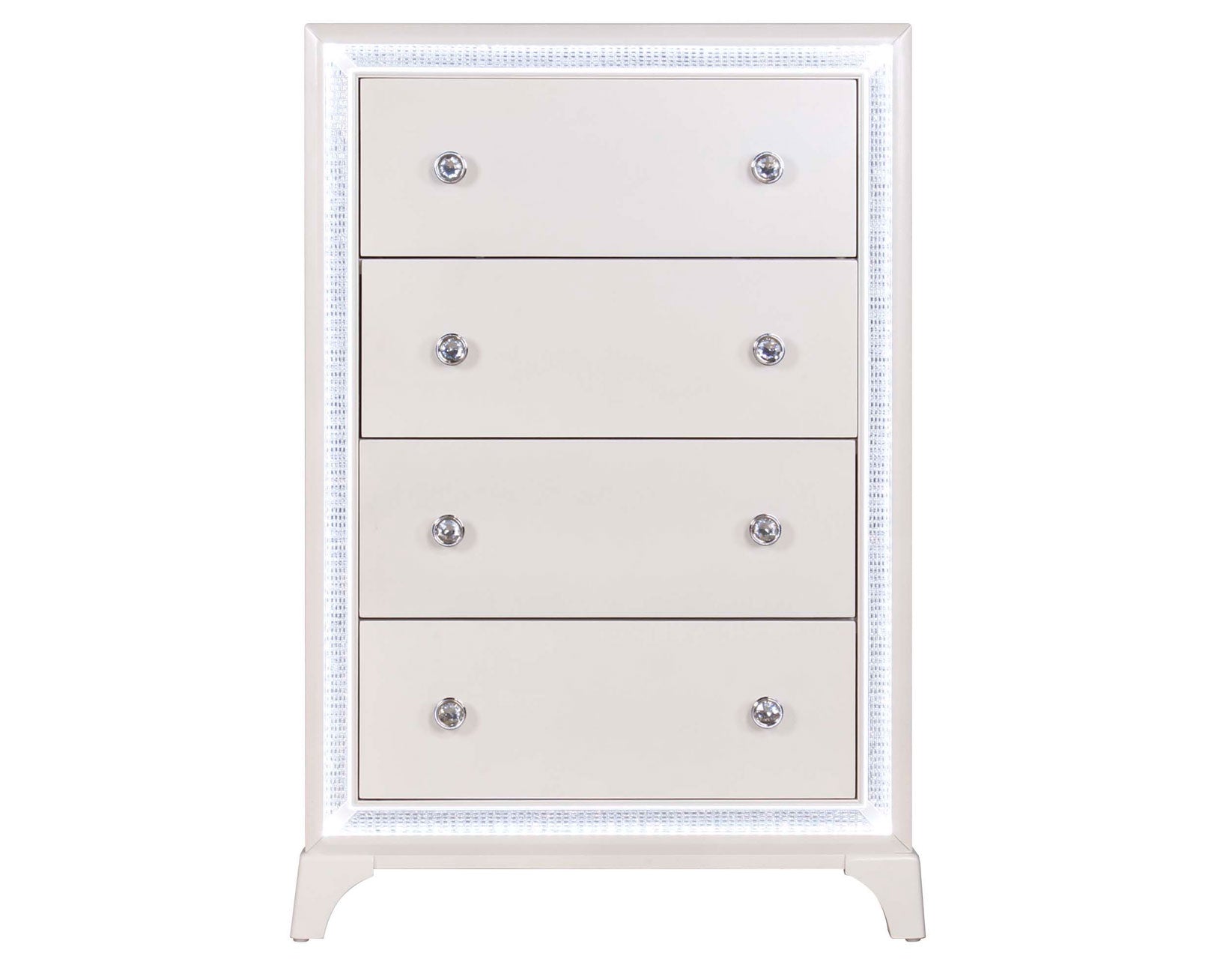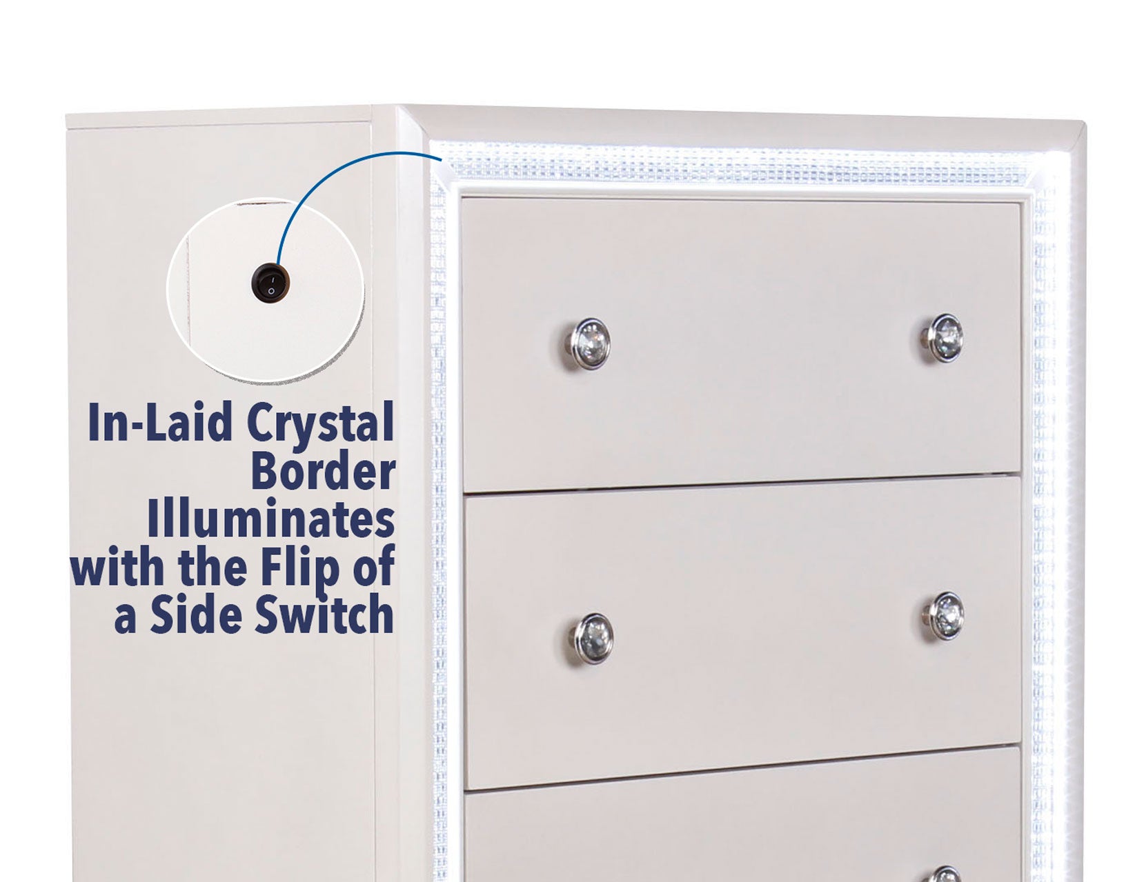Cassie Illuminating 5-Drawer Chest, Shimmering Pearl Finish