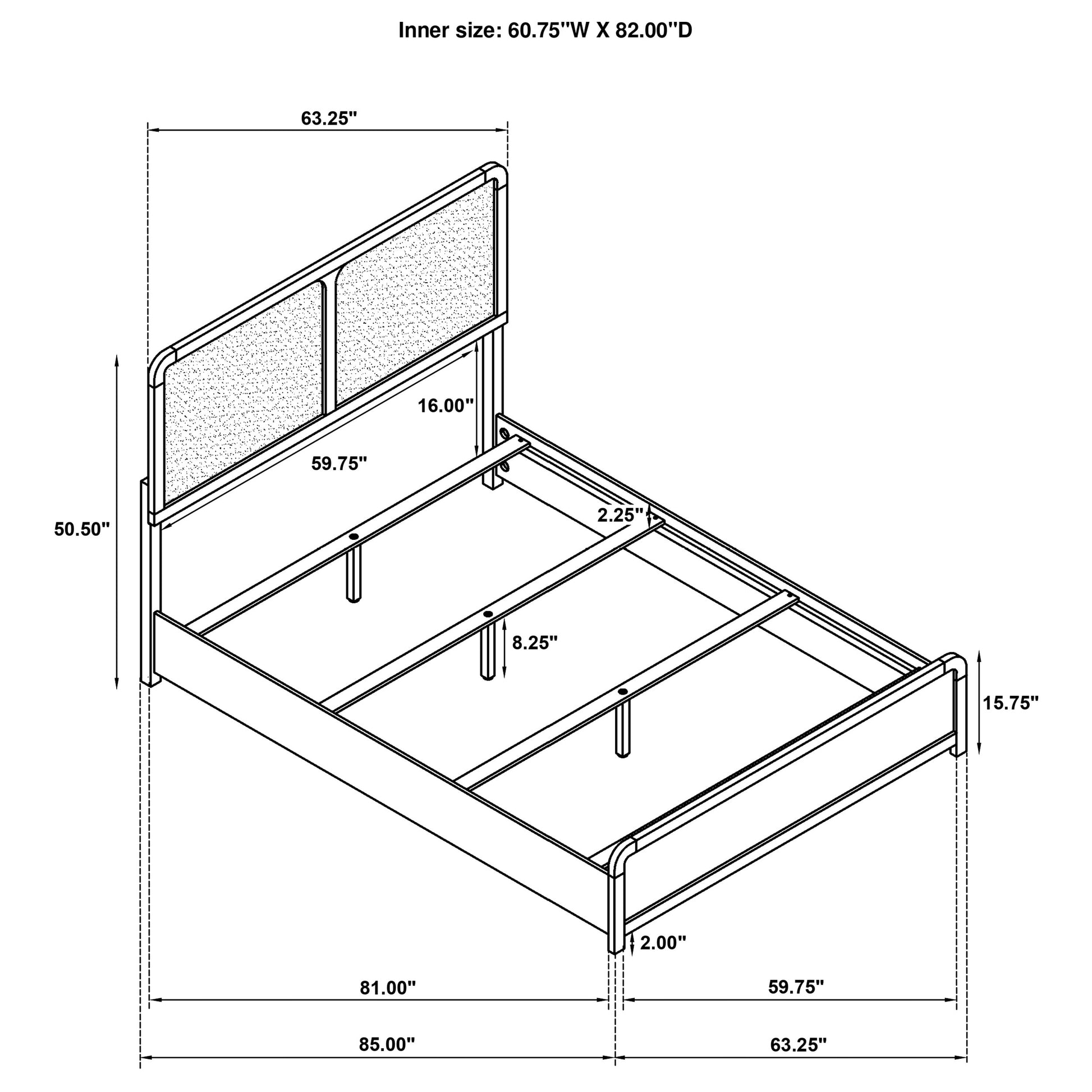 • Headboard is padded with foam and features charcoal upholstery with a soft, inviting look and feel