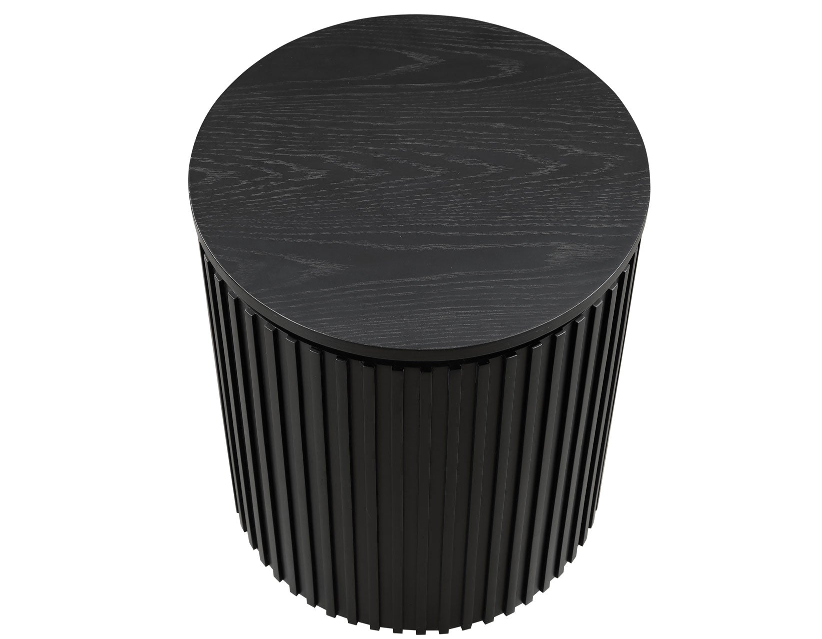 Inspired by Art Deco and Empire styling, the Colvin 18″ Round End Table brings modern elegance to your living area. Finished in sleek black over Asian hardwoods, it radiates warmth and beauty, perfect for those who appreciate sophistication. This versatile piece is ideal as a side table companion or at the end of a sofa, effortlessly blending style and functionality. Featuring a reeded base and a spacious round top, the Colvin End Table provides ample room for living room essentials, combining timeless design with practical utility.