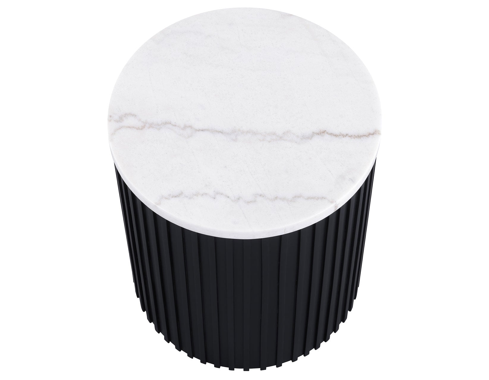 The Colvin 3-Piece White Marble Top Table Set, Black Finish brings timeless elegance with its Art Deco and Empire-inspired styling. The 36″ Round White Marble Top Coffee Table features a lustrous marble surface and black-finished reeded base, combining sleek design with practicality. Equipped with casters for easy mobility, it’s perfect for repositioning or cleaning. Completing the set are two matching White Marble Top End Tables, ideal as side companions to chairs or sofas. This set blends luxury, versatility, and sophistication, effortlessly elevating your living space in minutes.