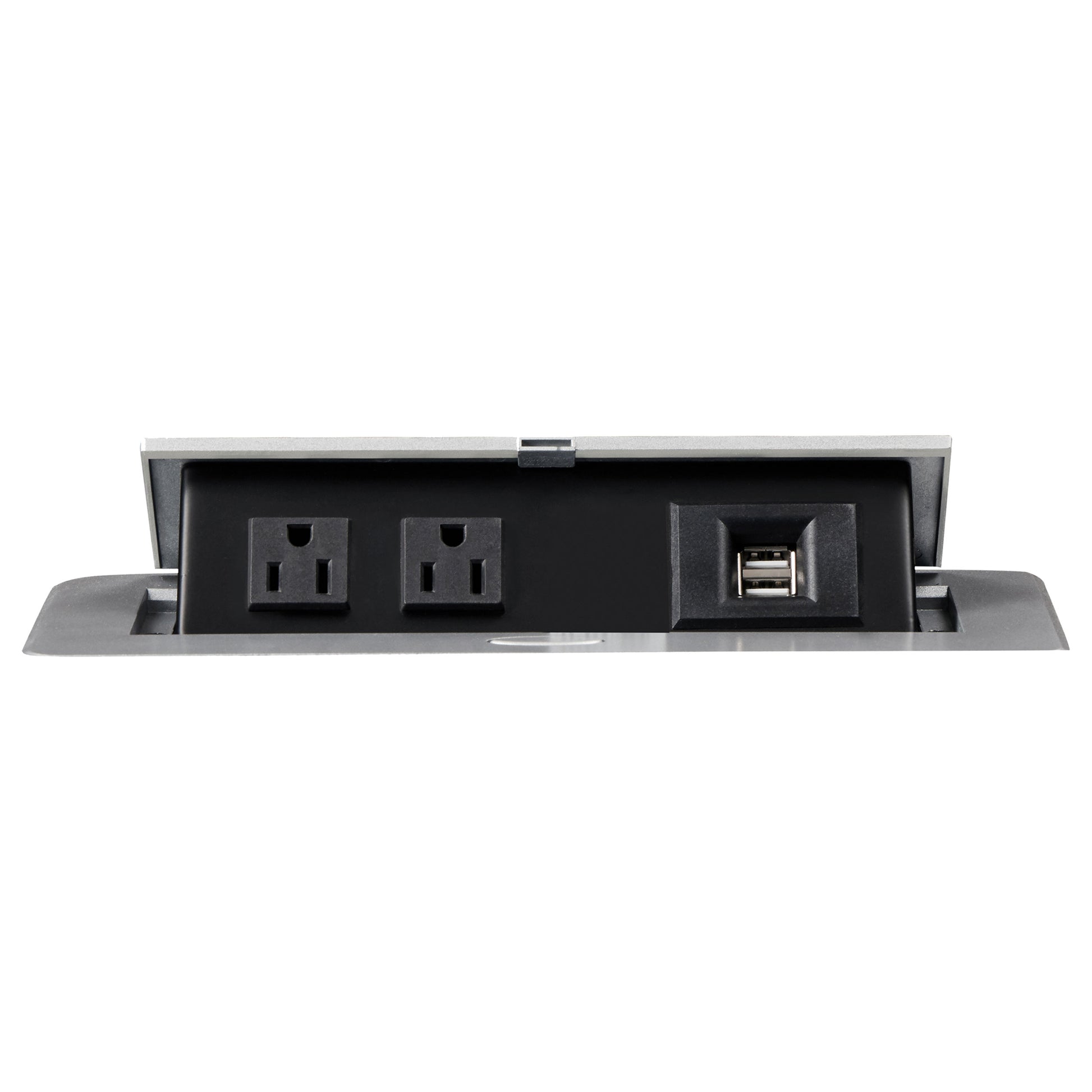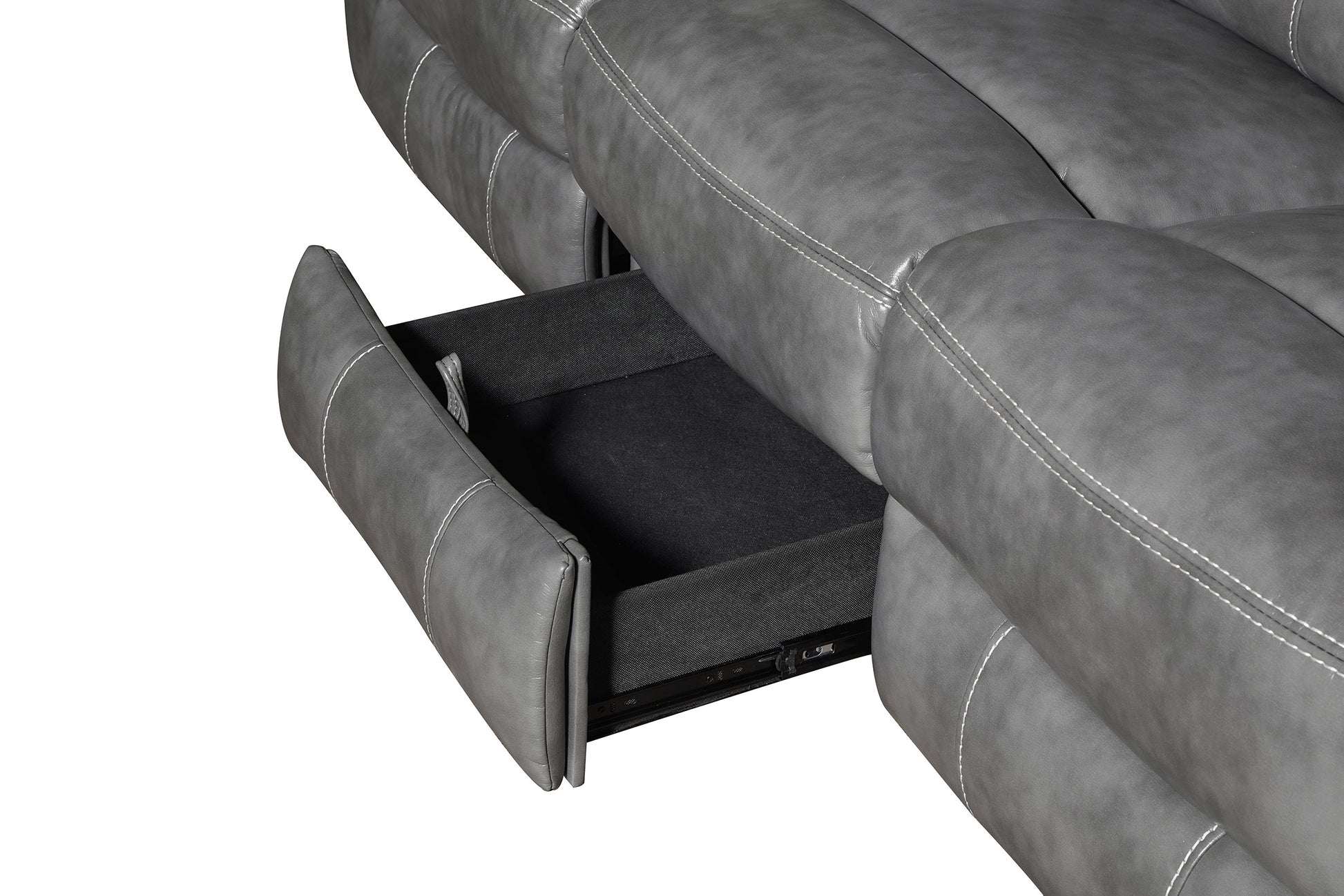 • Sofa features drop-down table with AC and USB power outlets