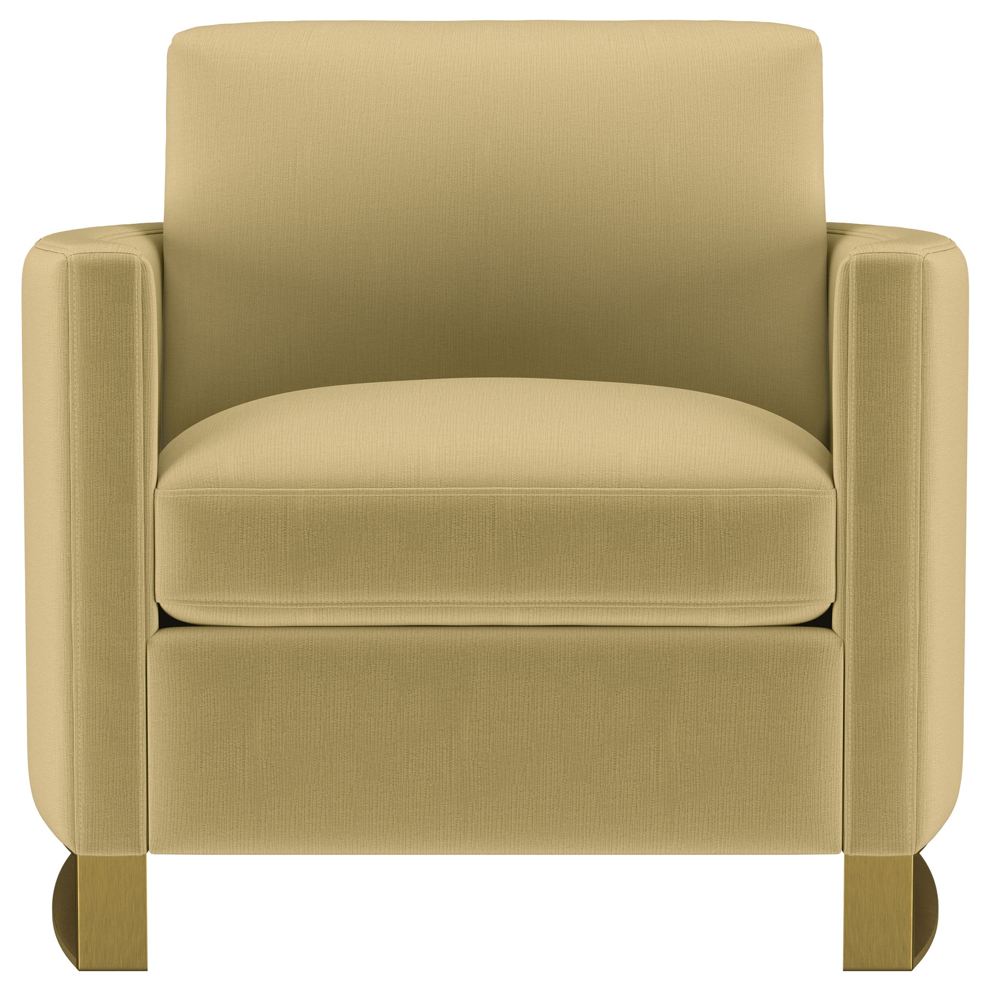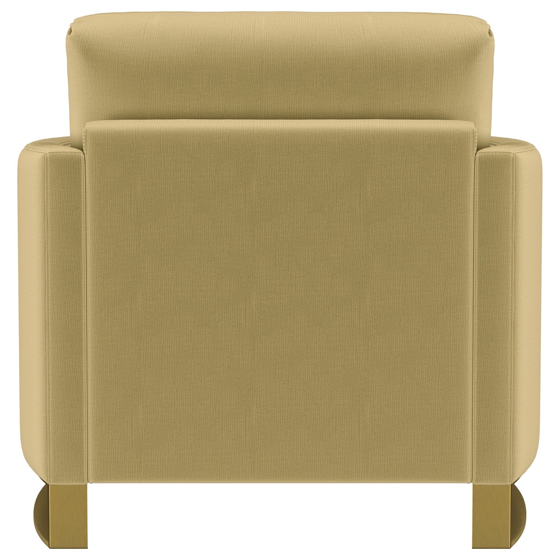 Indulge in opulent comfort with this textured velvet chair. Its reversible feather blend seat and back cushions, complemented by curved arms and gold stainless steel legs. Smooth upholstery and lustrous details blend simplicity with timeless splendor, making this piece a perfect focal point for refined interiors. With its inviting profile and graceful presence, it elevates both style and relaxation.