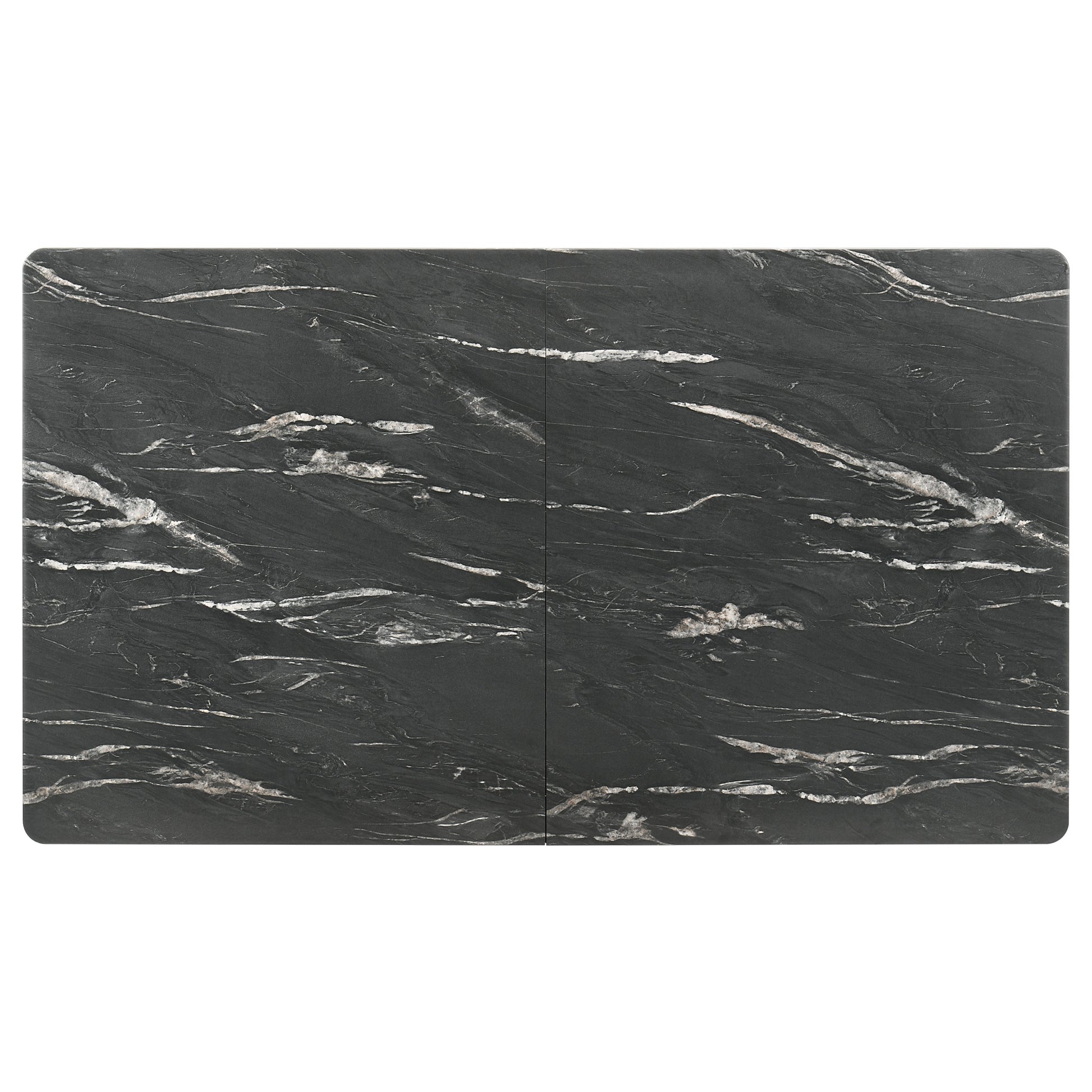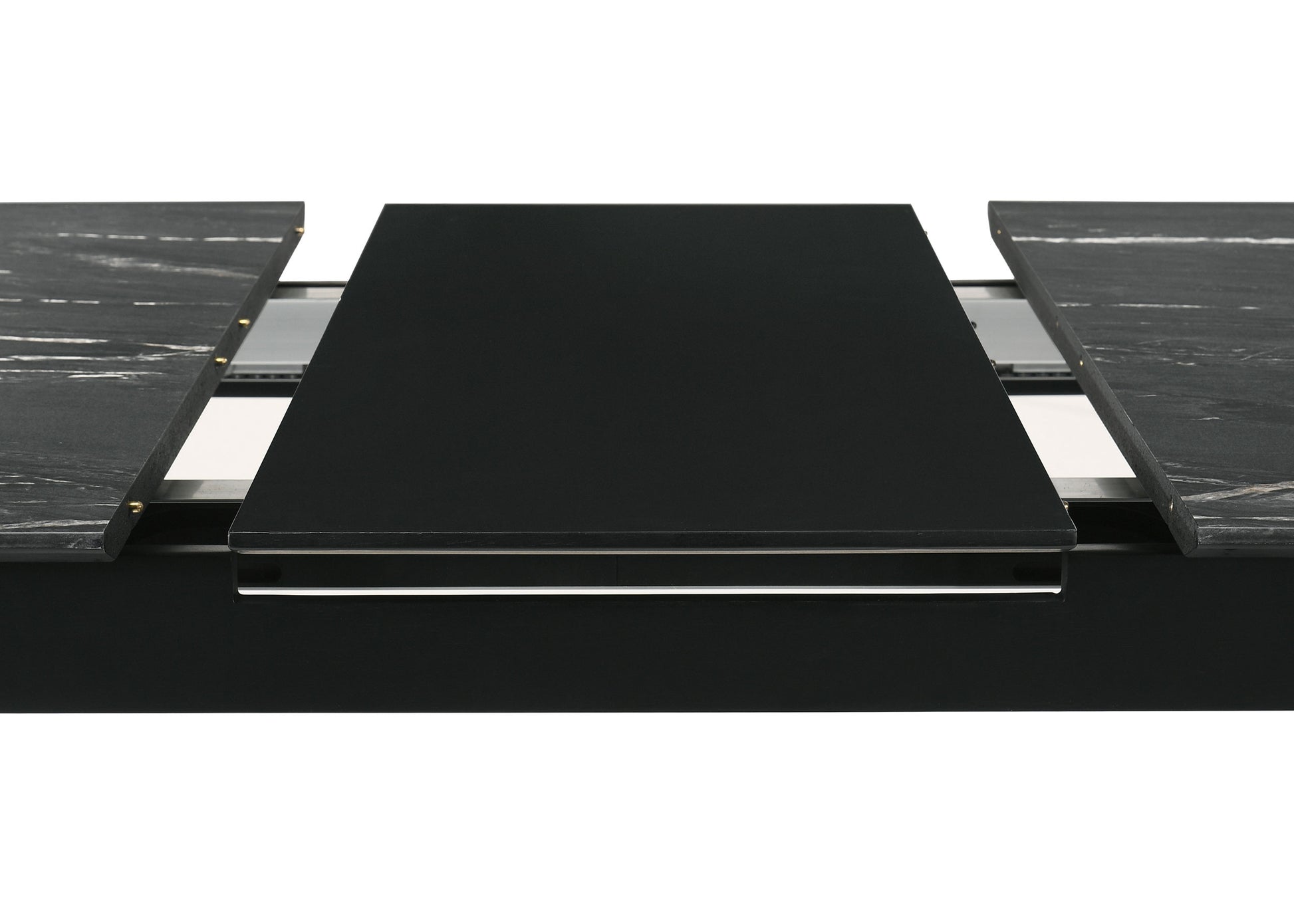 Envision your gatherings transformed with this exquisite dining set, where the sleek lines of modern design meet the timeless allure of faux marble. The table's luxurious black marble-esque top is a symphony of style, supported by fin-style legs that ground it with a touch of sophistication. As your ensemble grows with the seamless self-storing extension, the dining tableau adapts, offering a spacious stage for both feasts and intimate conversations. Accompanying the table, the Danish Y-shaped wishbone chairs, dressed in black and beige, whisper of coastal breezes and relaxed elegance, their form both a nod to tradition and a statement of contemporary grace. This dining set doesn't just host meals; it curates experiences.