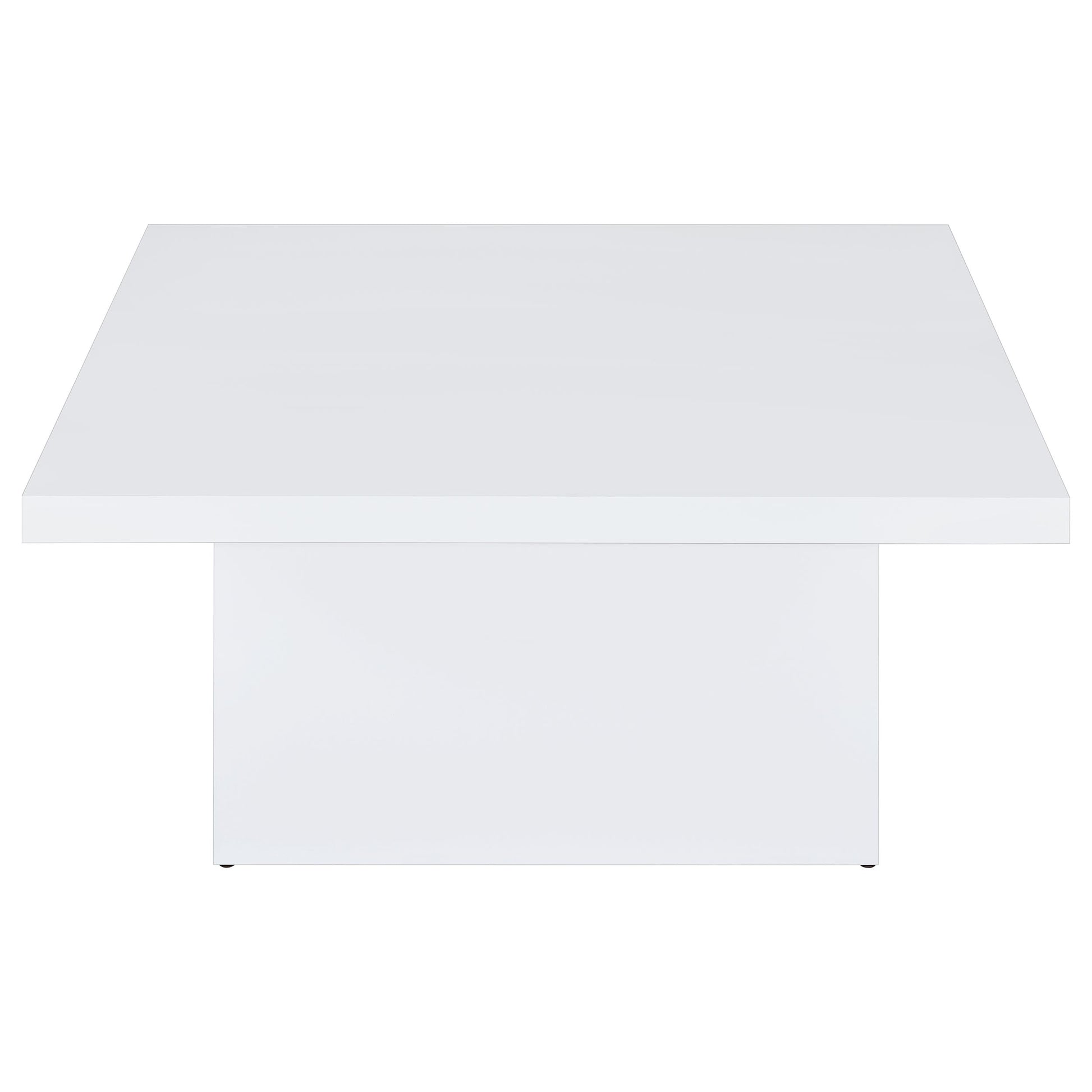With bold geometry and a radiant finish, this coffee table offers sleek structure and brightness. A thick square top floats over a broad plinth base, creating a grounded yet sculptural silhouette. The white polyurethane high gloss finish reflects light beautifully and enhances modern appeal. Made from engineered wood, it’s a functional and elegant cocktail table for glam, minimalist, or open-plan living areas.