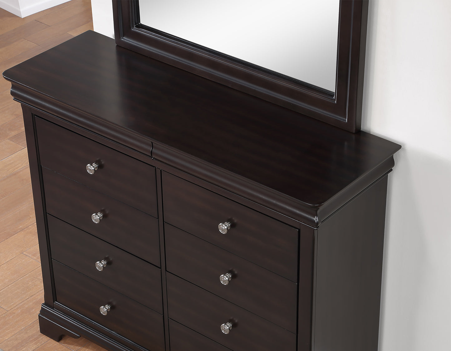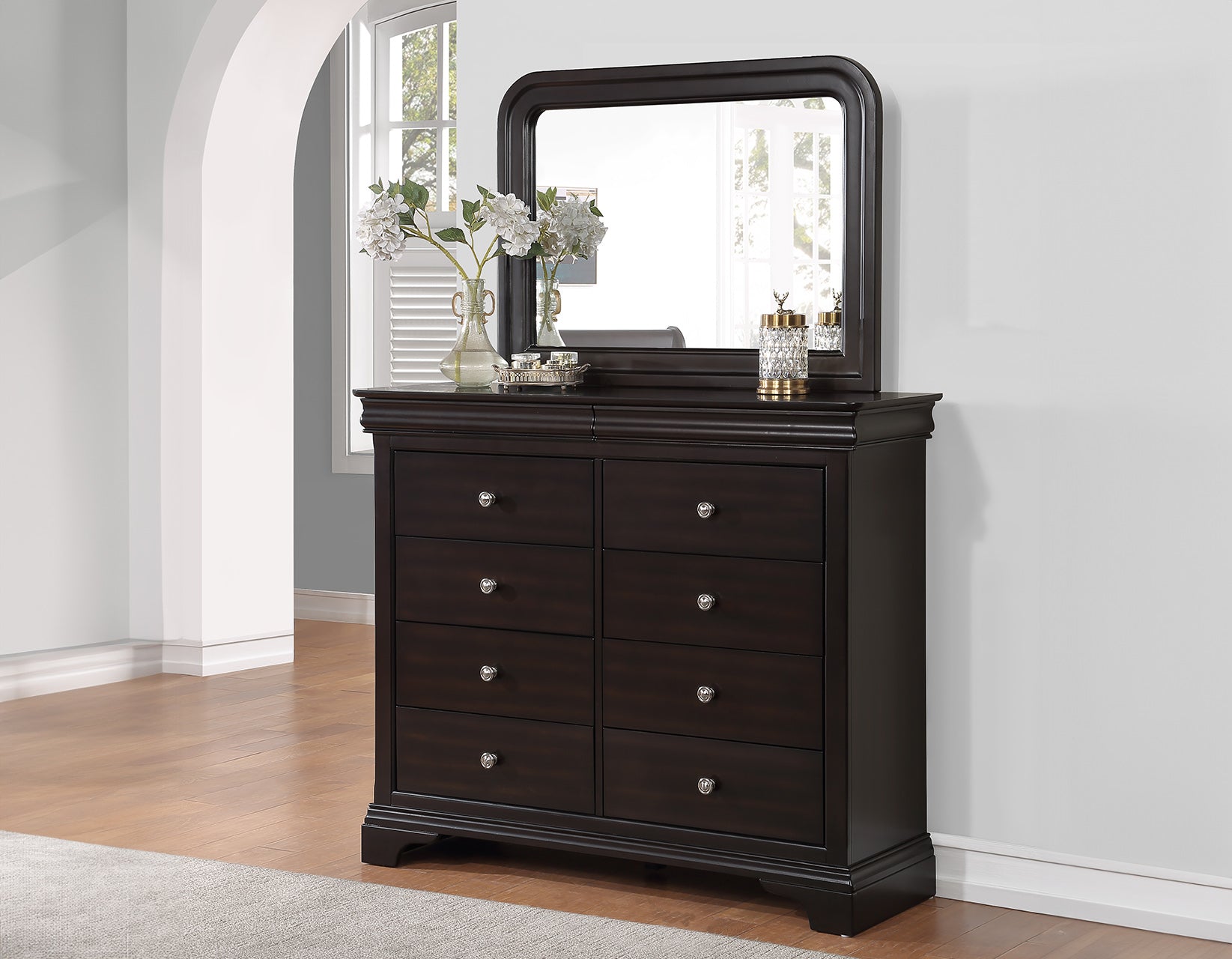 Lorient 8-drawer LED Flame Box Dresser and Mirror Black