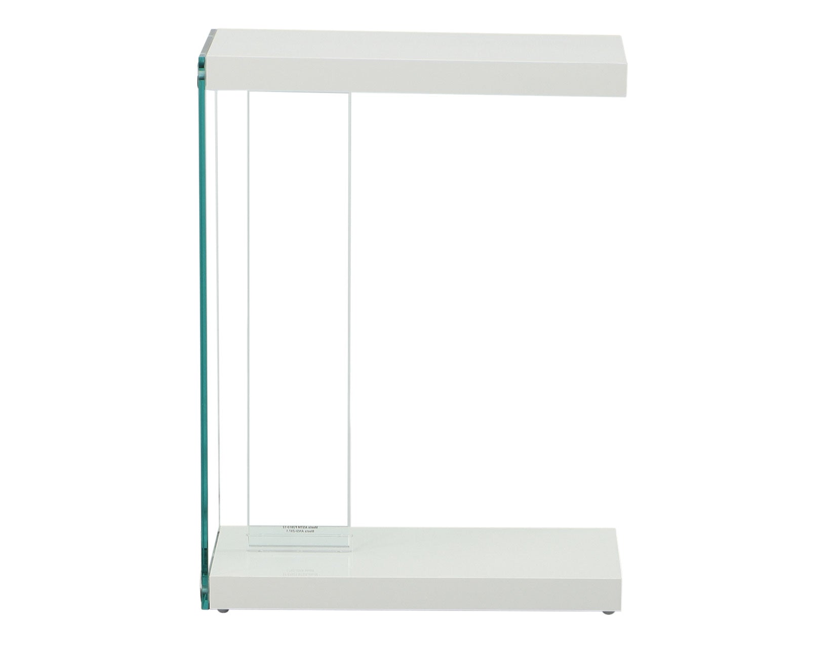 The Elaina Chairside End Table presents a light airy form in an extremely functional “C” table configuration. The Glossy White finish complements any contemporary environment and the tempered glass and acrylic supports give the table a light footprint that is easy to decorate around. Use beside an upholstered piece or pull under the front of a sofa or loveseat for an instant work area.