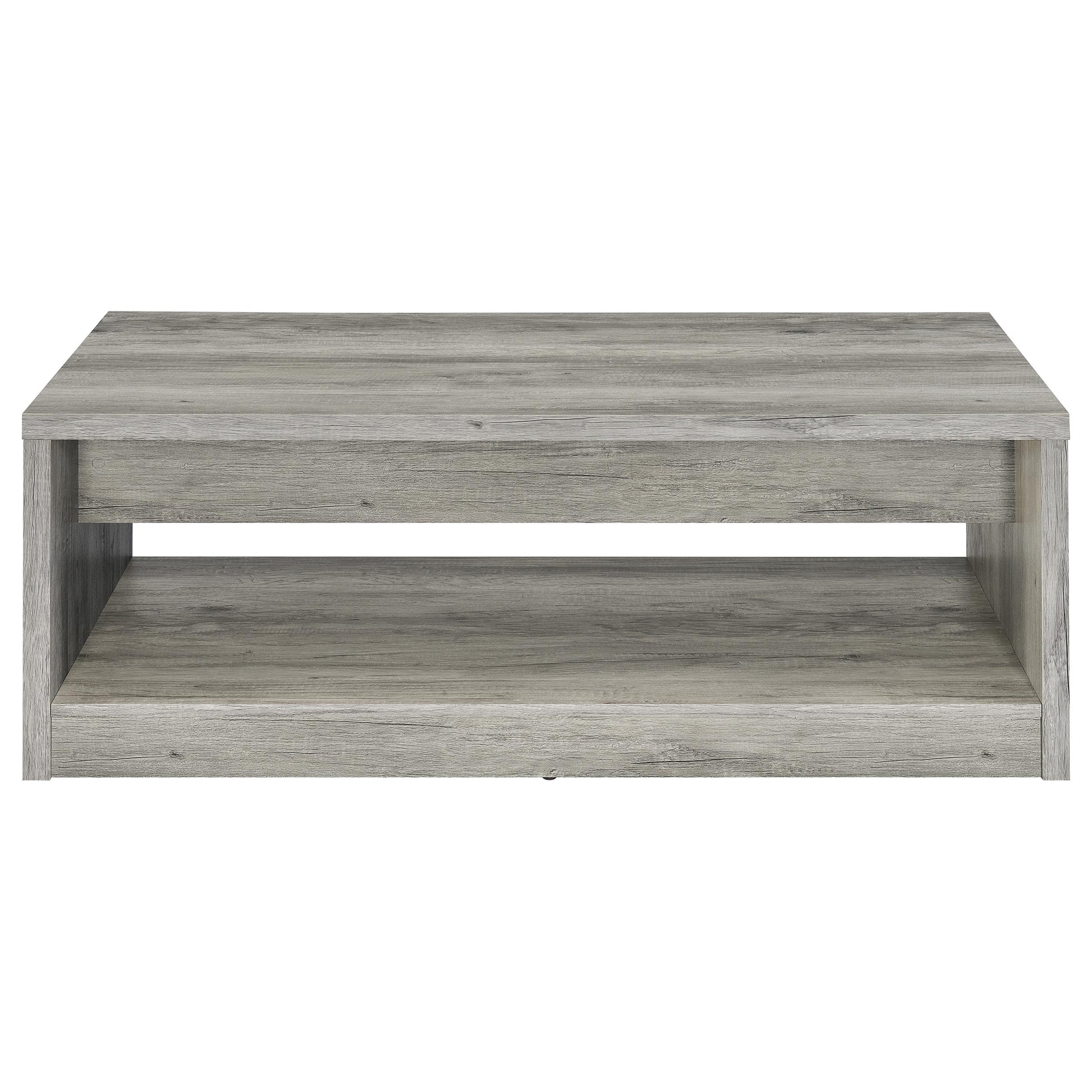 • Rustic coffee table set with a natural gray wood-look finish for cohesive styling