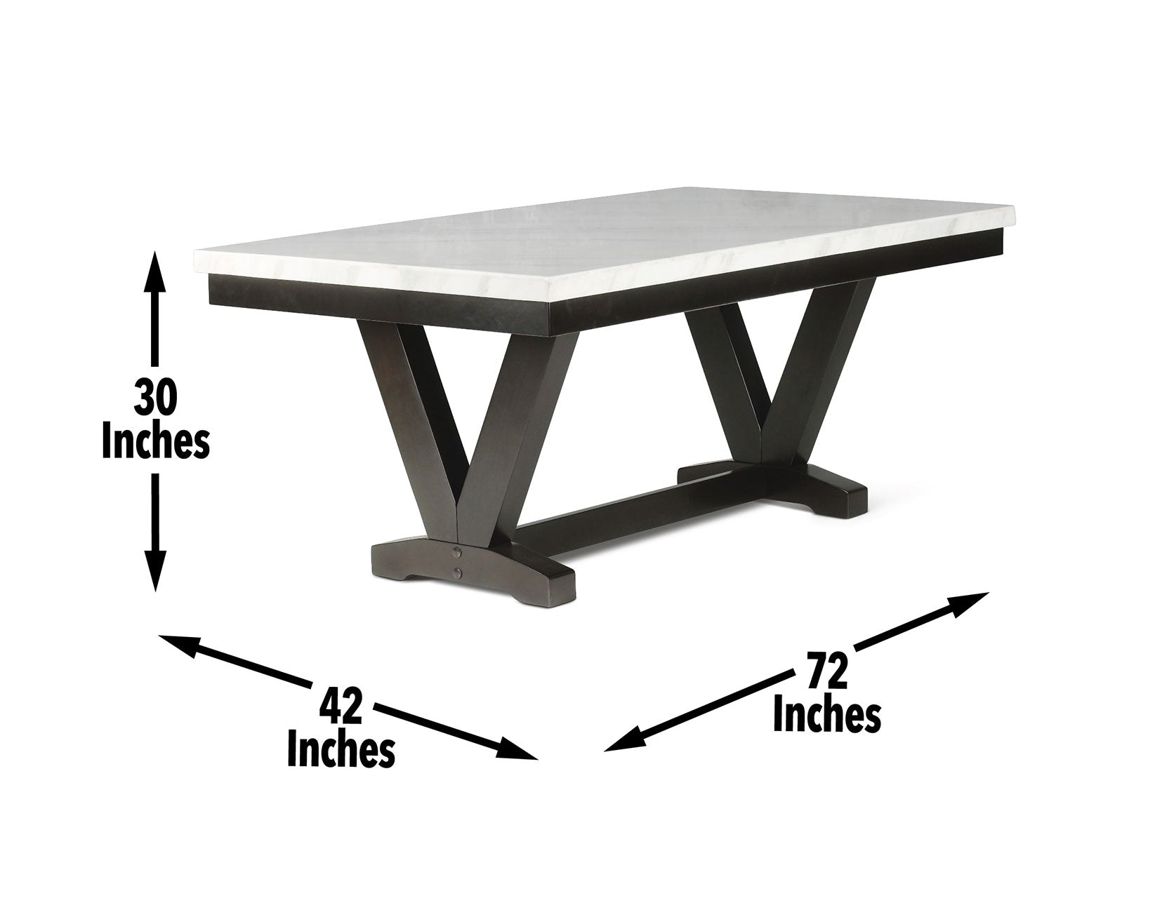 Put on the ritz with Finley dining by Steve Silver Company. The beautiful white marble top table feaures one-piece veneer construction for a seamlesss look that is sure to please. The nailhead trim polyurethane chairs are easy-to-clean and add a touch of glamour to any room. This sophisticated set seats six comfortably and will be sure to impress your family and guests!