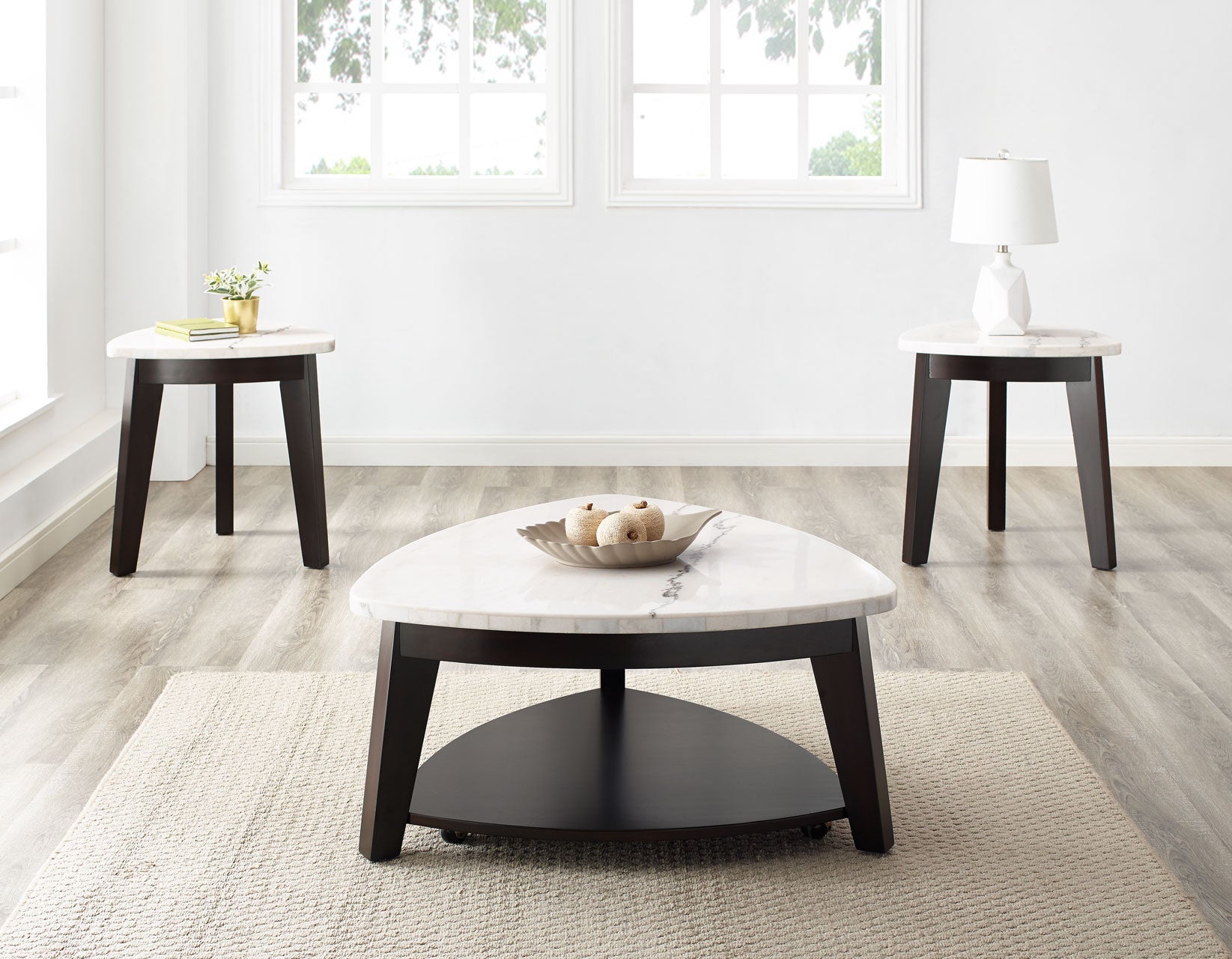 Elegant stone top tables from Francis by Steve Silver Company. A rich cordovan cherry finish pairs beautifully with a white marble top to create a stunningly beautiful occasional collection. Choose from cocktail table, end table or sofa table that features a shelf for electronic storage. Any way you go, Francis’ fresh design is sure to brighten up any living room area.