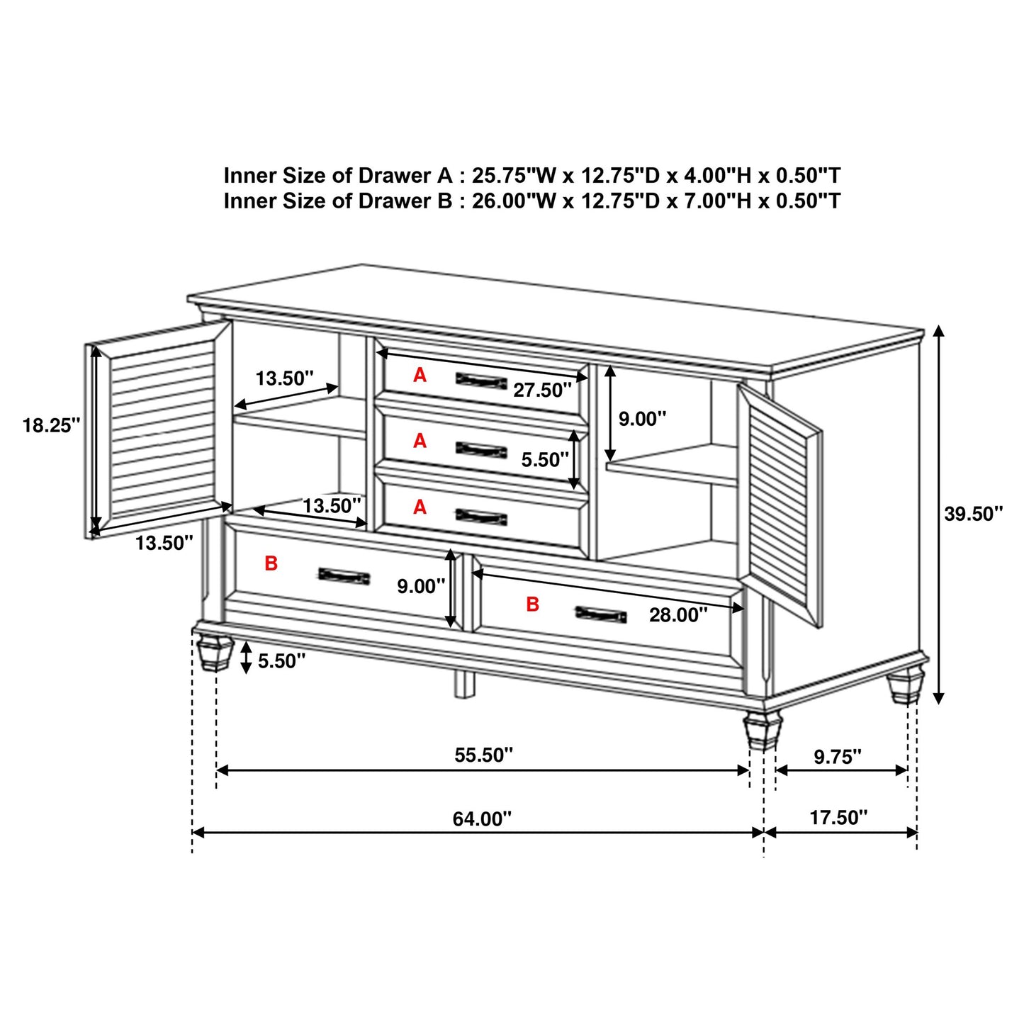 • Drawer Weight Limit: 45 Lbs