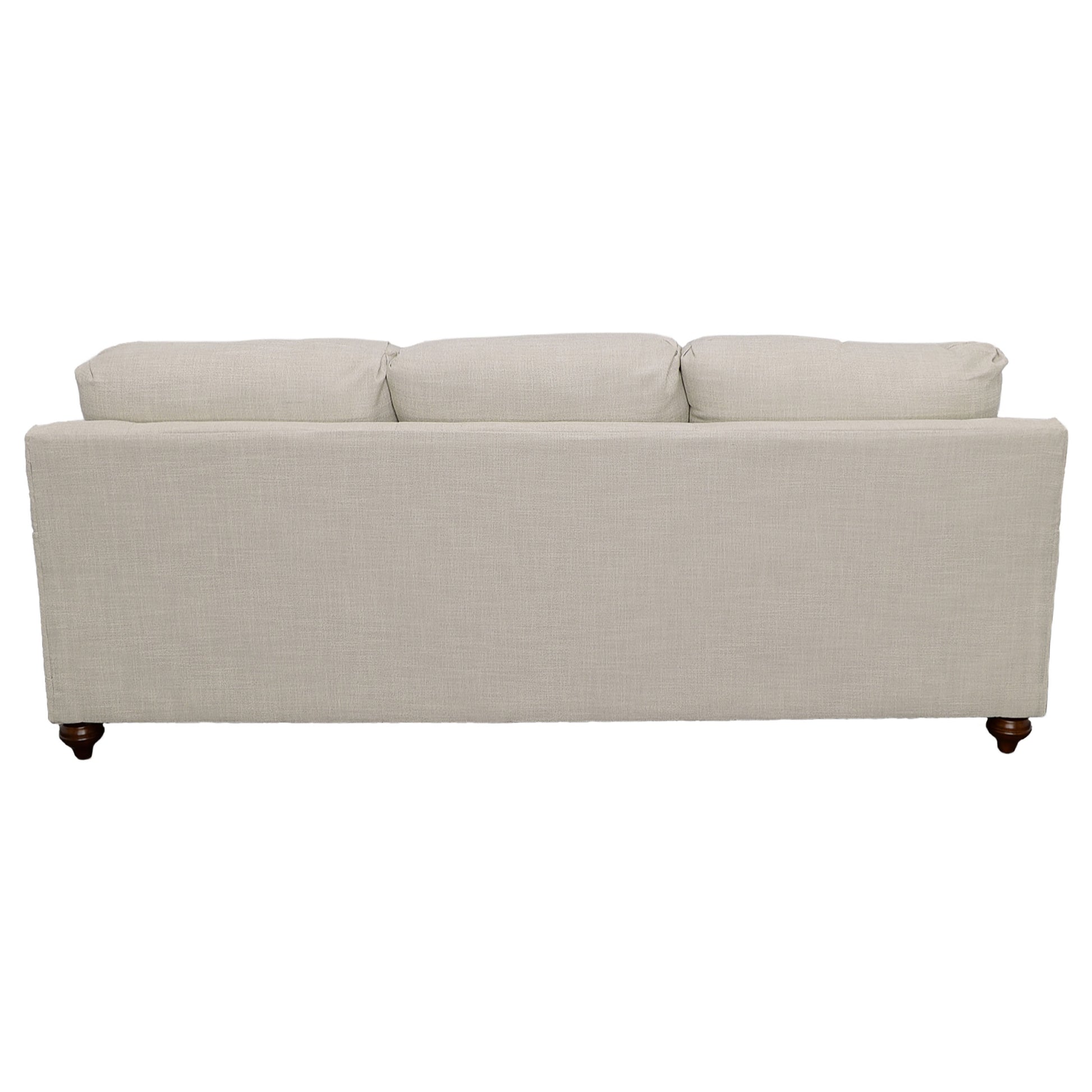 Chic and sophisticated, this impeccable three-piece living room sofa set is just the choice for a stylish, coordinated look. Offering a three-seat sofa, two-seat loveseat, and an armchair, the set is anchored with clean, classic lines including tailored English arms and attached back cushions. Gentle curves draw the eye while T-cushion seating ensures plush comfort and support. Each piece in the set rests on turned feet in an espresso finish. The sofa and loveseat feature light grey linen-like upholstery while the chair adds dimension and character with a charming grey houndstooth pattern.