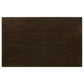 • Rectangular table in cappuccino finish features clean lines and bold tapered legs