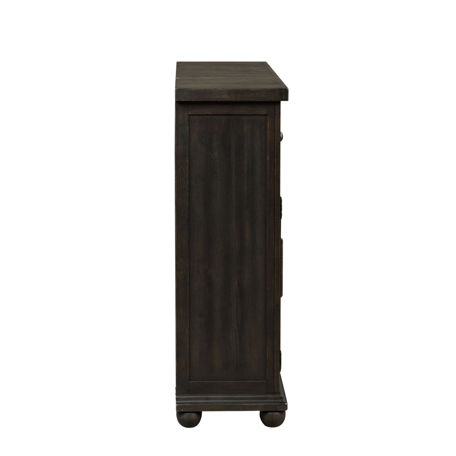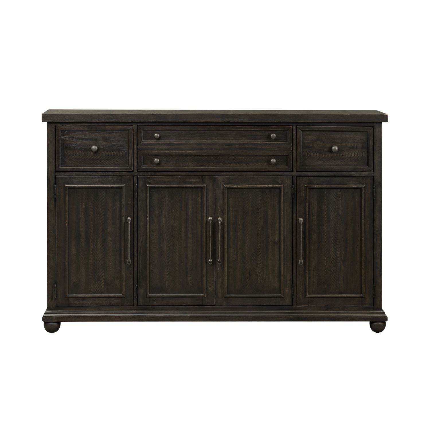 Make entertaining easy and stylish with the Harvest Home Hall Buffet. Use this piece in the entryway as a statement piece or as a hosting buffet in your dining room. Classic styling and farmhouse appeal highlight the buffet along with bun feet and bead molding. Crafted of rubberwood solids and knotty white oak veneers finished in a chalkboard gray with antique pewter bar pull and knob hardware. Function and beauty combine with and 4 doors that open to 4 shelves for storage. The case is rounded out with three drawers that feature full extension drawer guides and a fully finished interior.
