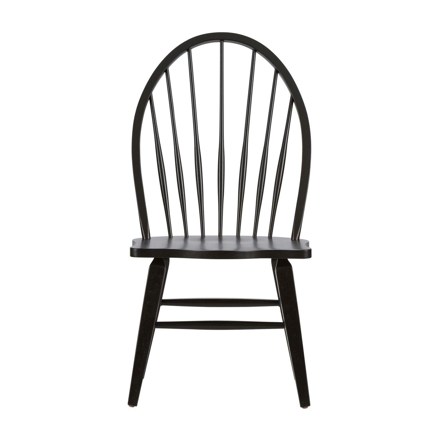 Wow family and friends with the Hearthstone Ridge five-piece rectangular table set. Crafted of rubberwood solids and oak veneers, this set features a tobacco and black finish and consists of the rectangular leg table, four Windsor back side chairs, and two Windsor back armchairs. The leg table has a planked top with canted corners and includes two 18” removable leaves that creates a grand scale. Wood and peg accents add to a craftsman feel. The table is anchored by thick tapered legs. The Windsor back arm and side chairs are known for their comfort and durability. They feature a black finish, a saddle shaped seat for added comfort, and splayed legs with nylon chair glides to protect your flooring. Hearthstone Ridge is a casual, rustic style that never goes out of fashion.