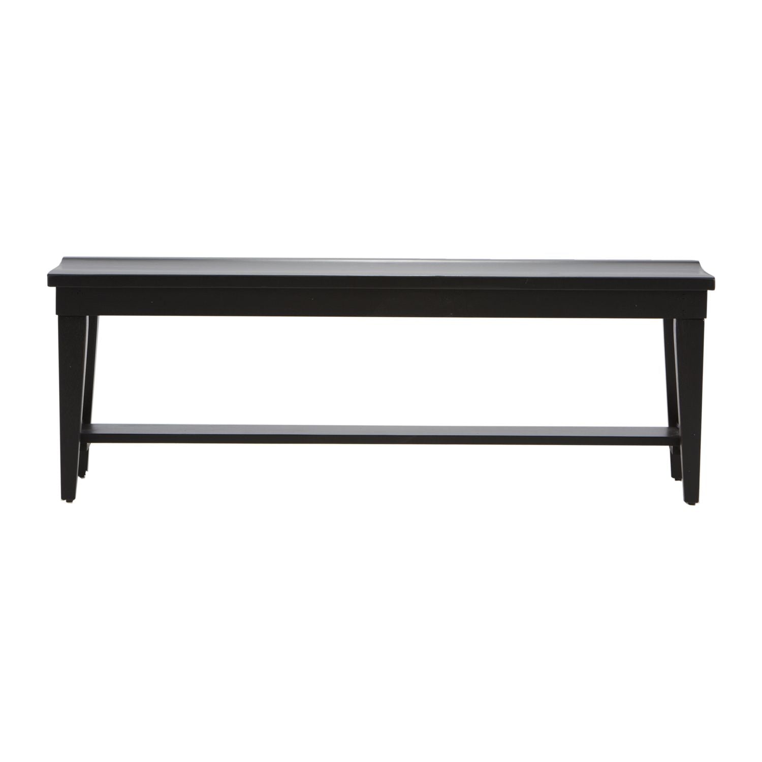 Sit in comfort and style with the Hearthstone Ridge bench. Crafted of rubberwood solids, this piece features a black finish, nylon chair glides to protect your flooring, saddle shaped seat for added comfort, wooden peg accents, a consumer friendly assembly for added convenience, and is available in an alternate finish. With vintage appeal, Hearthstone is a casual, rustic style that never goes out of fashion. Elements of shaker and craftsman designs accent this piece effortlessly.