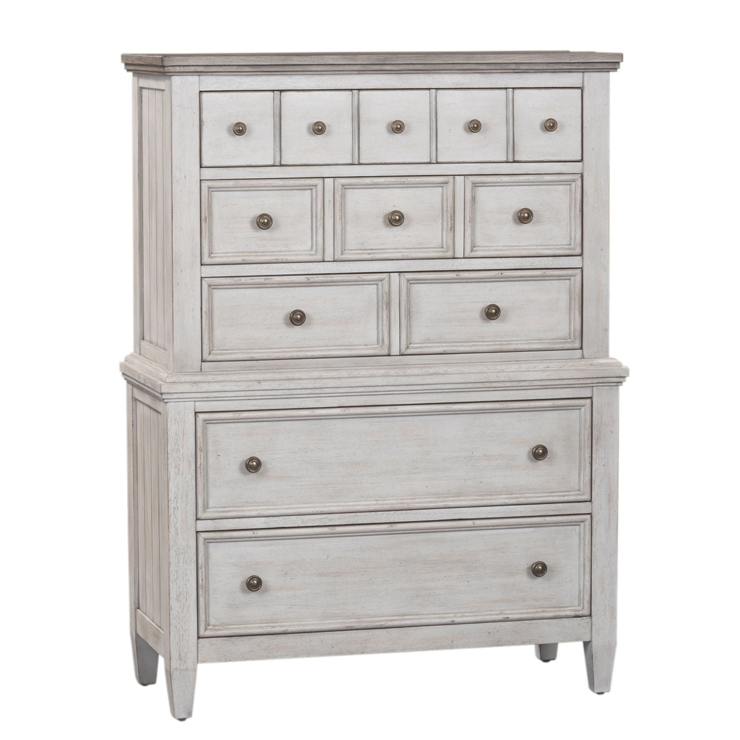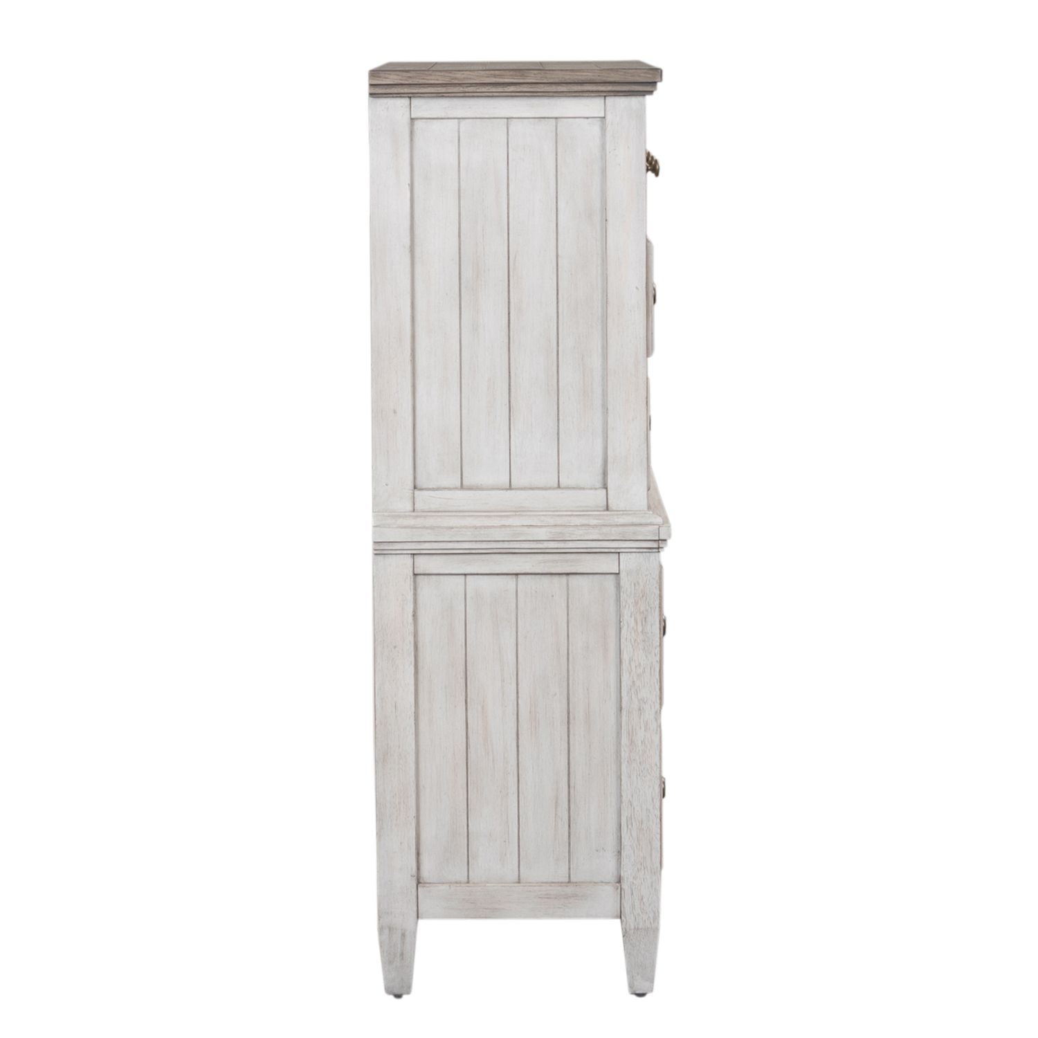 The Heartland chest is sure to make a statement in any home, as its heavily distressed finish is adaptable to any space. Crafted with rubberwood solids and cathedral white oak and birch veneers, this two-toned piece features a felt lined drawer with wood framed drawer fronts, accented by antiqued brass knob hardware.