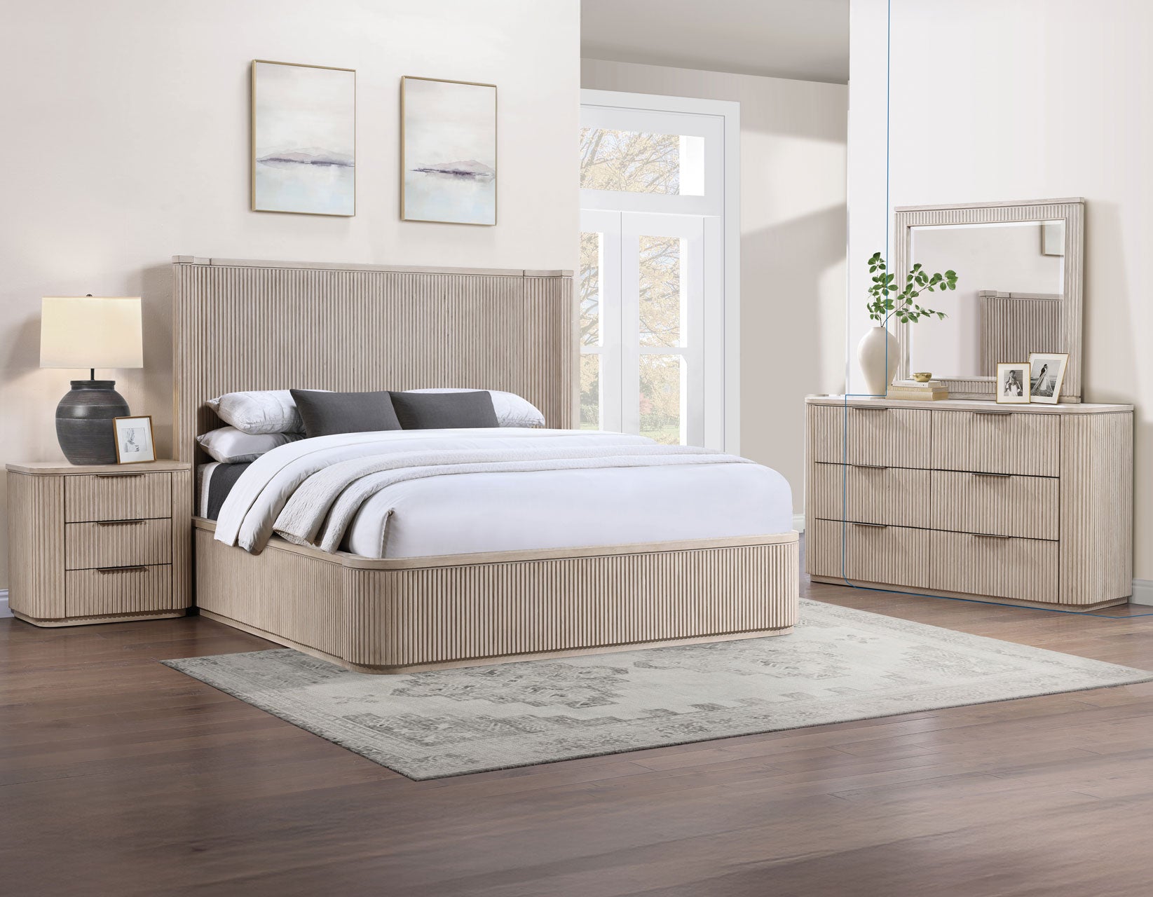 Henry Reeded King 4-Piece Bedroom Set, Tan Finish