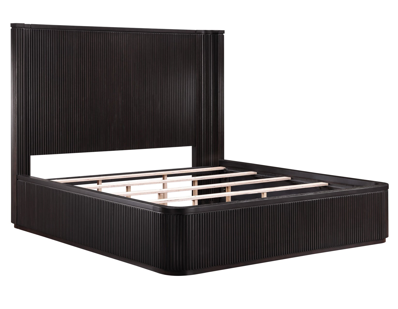 The Henry Queen Bed combines sleek modern design with softened edges, rounded corners, and elegant reeded detailing. Crafted from sturdy oak veneers in a lustrous espresso finish, it brightens the space and serves as a stylish yet understated anchor for your room. The headboard’s inverted corners provide a cozy nook, ideal for reading, watching TV, or relaxing in comfort.