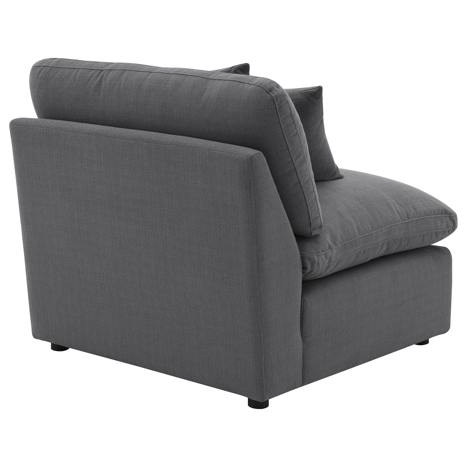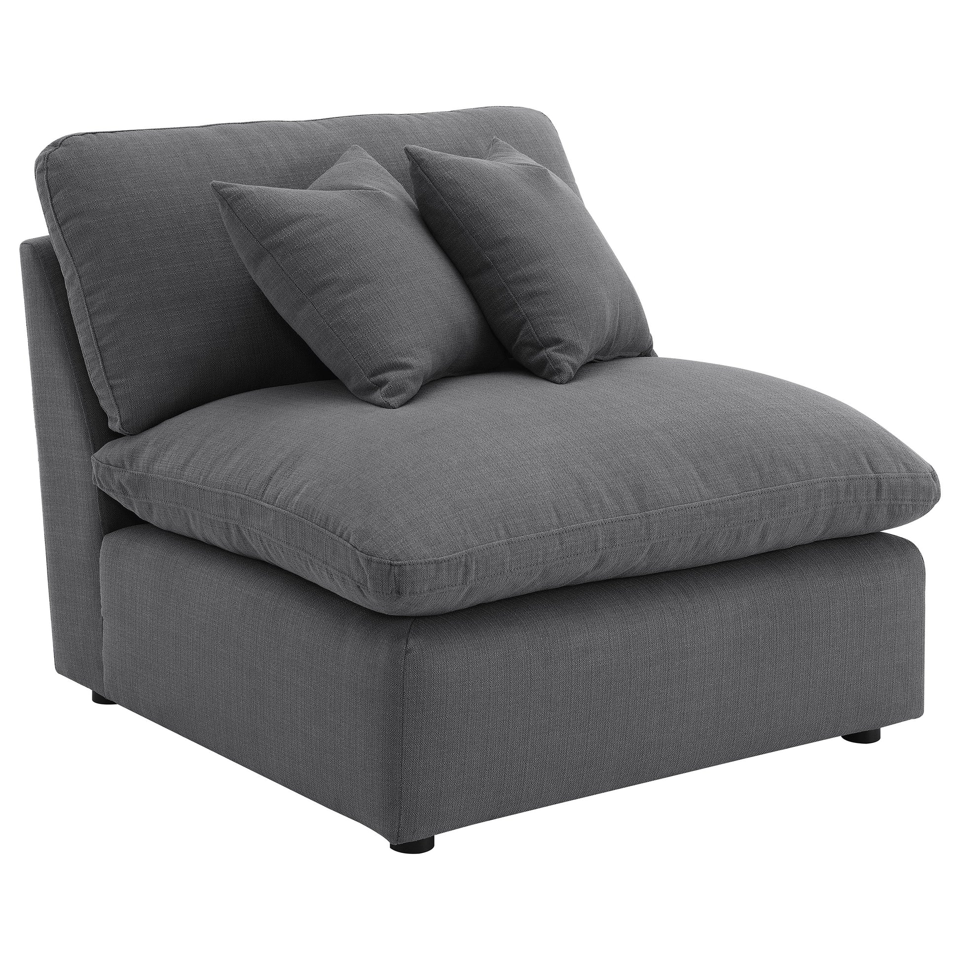 This armless chair combines plush cushioning with versatile design, making it a stylish and comfortable addition to any living room. Upholstered in soft fabric, it offers a supportive seat and back for everyday lounging. Clean lines and tailored topstitching create a contemporary look, while treated upholstery resists moisture for easier cleanup and long-lasting appeal. With its refined silhouette and cozy construction, this chair brings both comfort and style to your home.