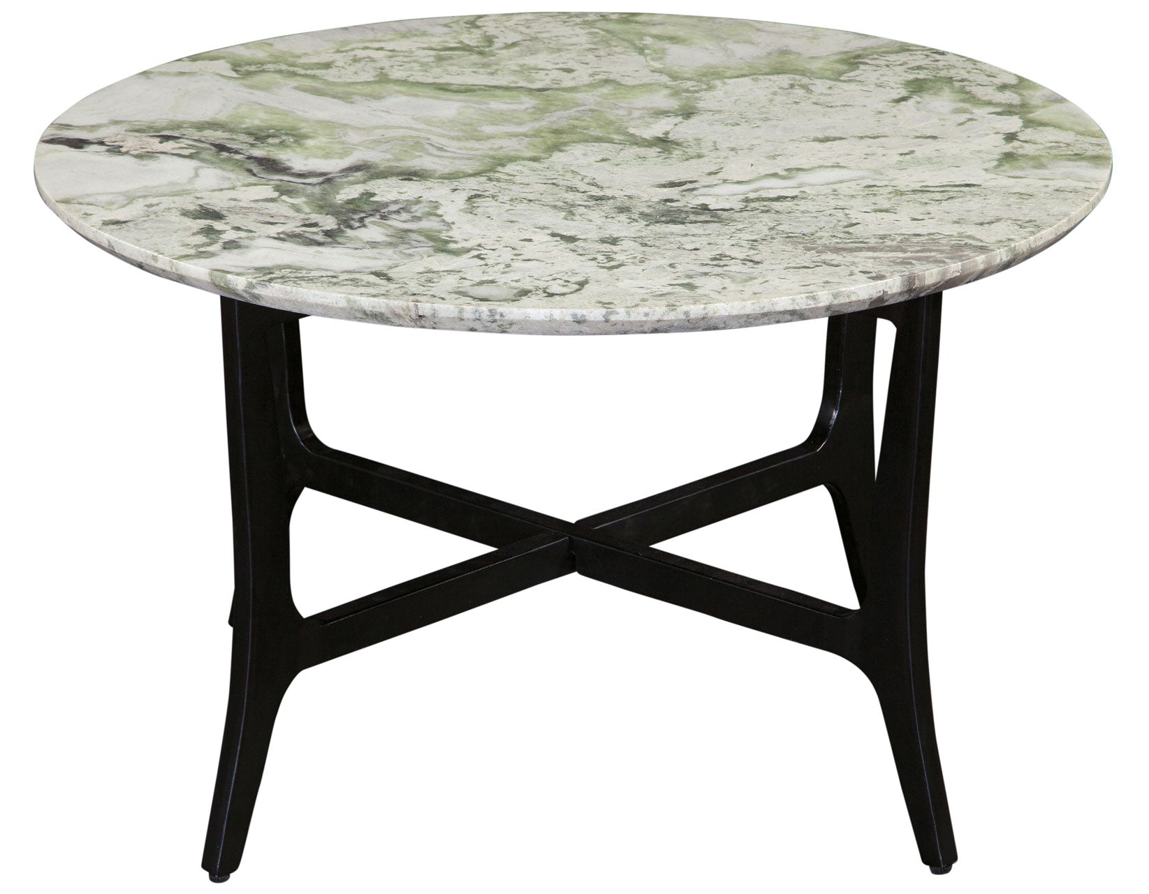 Striking and artfully designed, the Hoxley 3-Piece Round Green Onyx Table Set blends natural luxury with modern form. Featuring a 30″ round coffee table and two matching end tables, each piece showcases a genuine green onyx top with a refined under-beveled edge and stunning, organic color variation—making every table one of a kind. Black powder-coated iron bases offer sturdy support with sculptural elegance. Perfect for transitional to eclectic interiors, this mixed-material set adds bold presence, functional surface space, and timeless character to any living room arrangement.