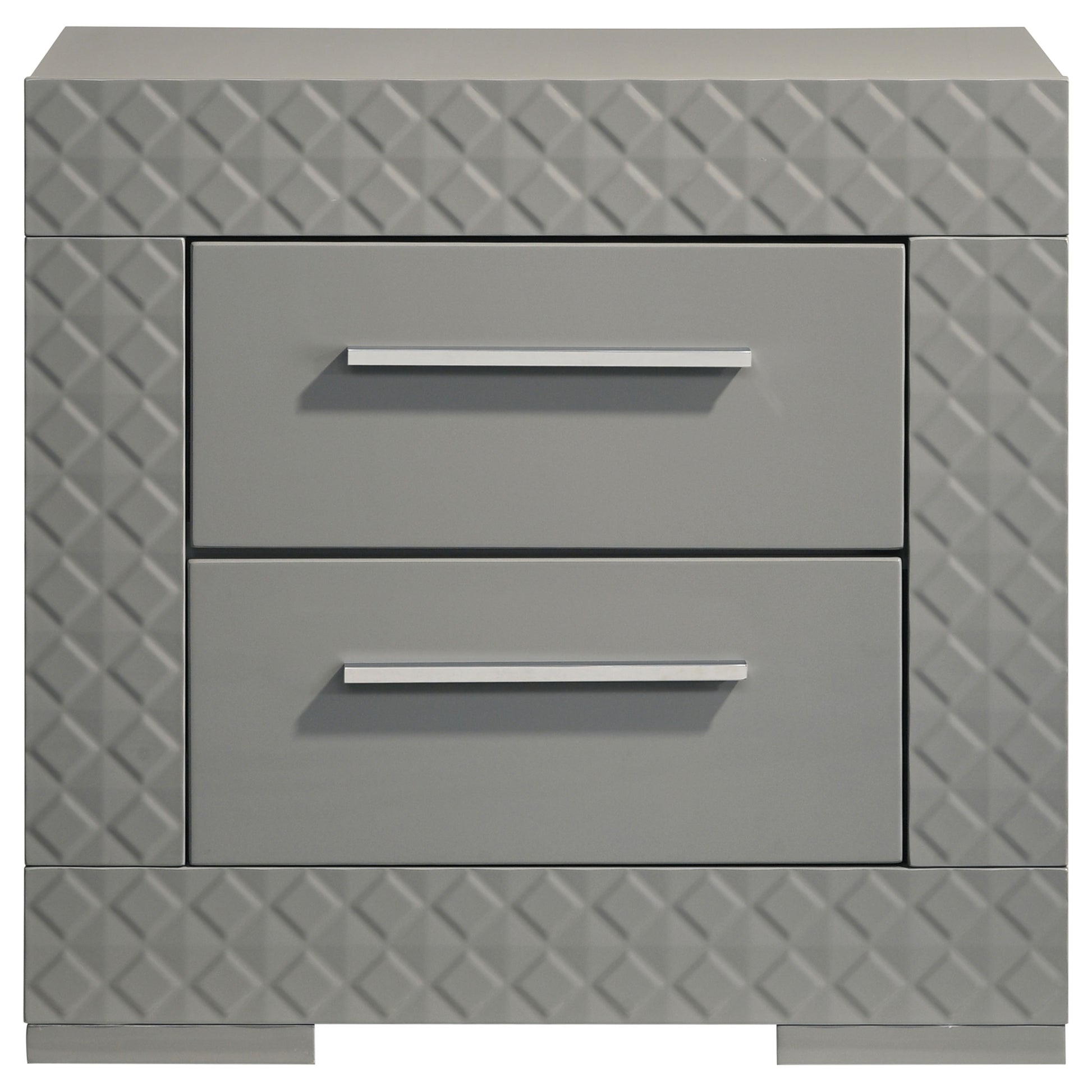 Ives 2-drawer Nightstand Bedside Table Grey High Gloss
