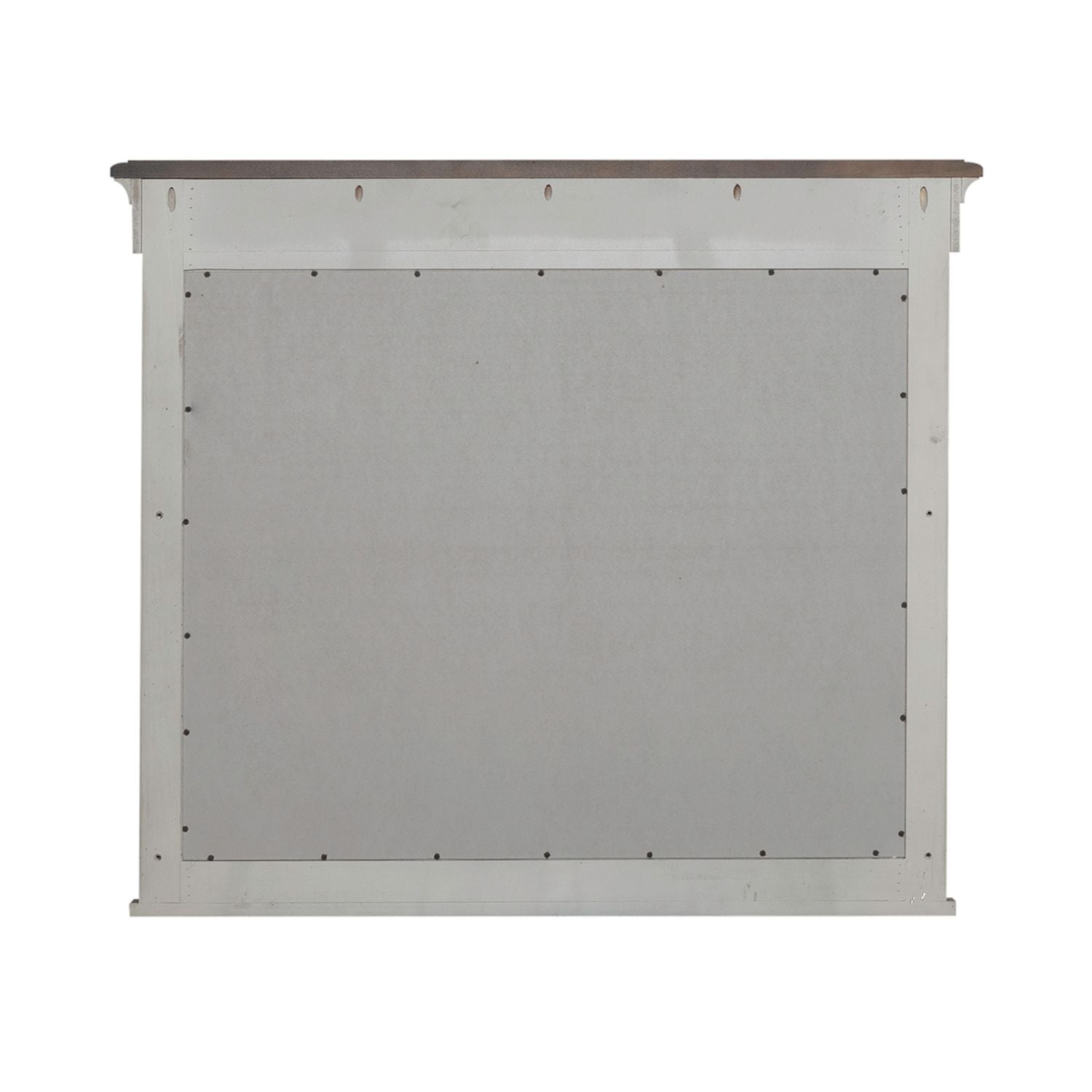 Live life beautifully with the Ivy Hollow landscape mirror. Crafted of poplar solids with pine and alder veneers, this piece features a heavy top crown in dusty taupe and is accented with a weathered linen frame that is heavily distressed with saw marks. This mirror has a beveled edge and pin nail head accents. The included bolt-on supports allows you the option of attaching this mirror to the dresser. Inviting and inspirational, Ivy Hollow offers a look and design style that works for cottage or contemporary and is more about creating a look that we love.
