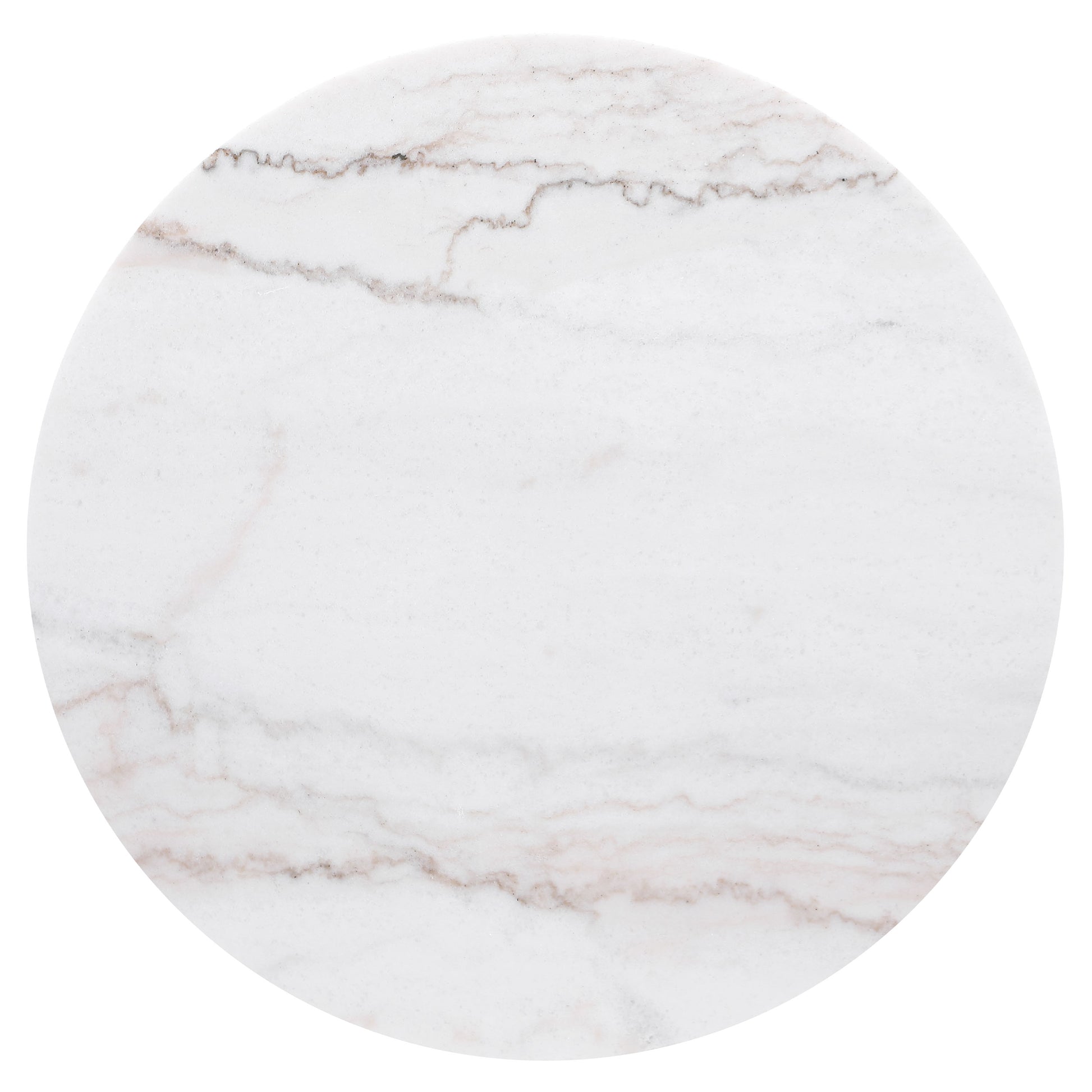 • White marble top with organic veining offers a sophisticated touch