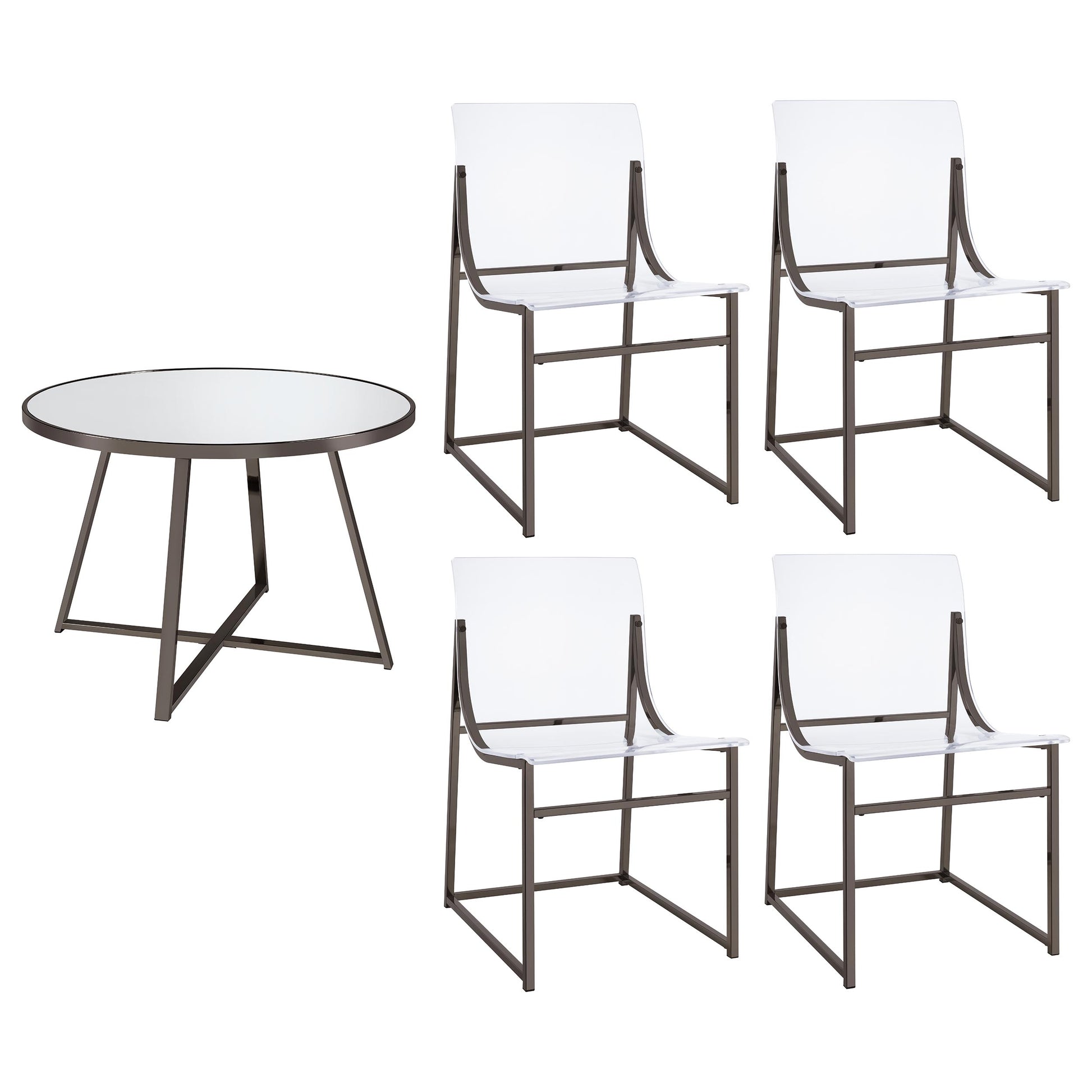 Jillian 5-piece Round Mirror Top Dining Set Black Nickel