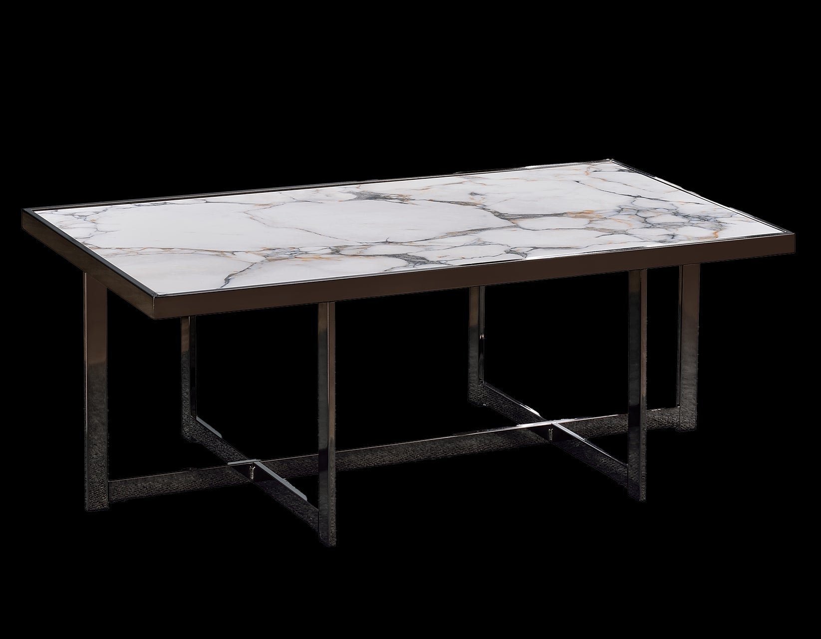 Sleek sophistication defines the Kayley 3-Piece Table Set, featuring a cocktail table and two end tables. Each piece showcases a stunning sintered stone inlay atop a black nickel-finished iron base, marrying modern elegance with durability. The sled bases with cross stretchers provide stability and architectural flair. Designed for performance, the set resists wear and requires minimal maintenance, keeping your space effortlessly pristine. Ideal for contemporary interiors, the Kayley set brings coordinated style and function to any living area.
