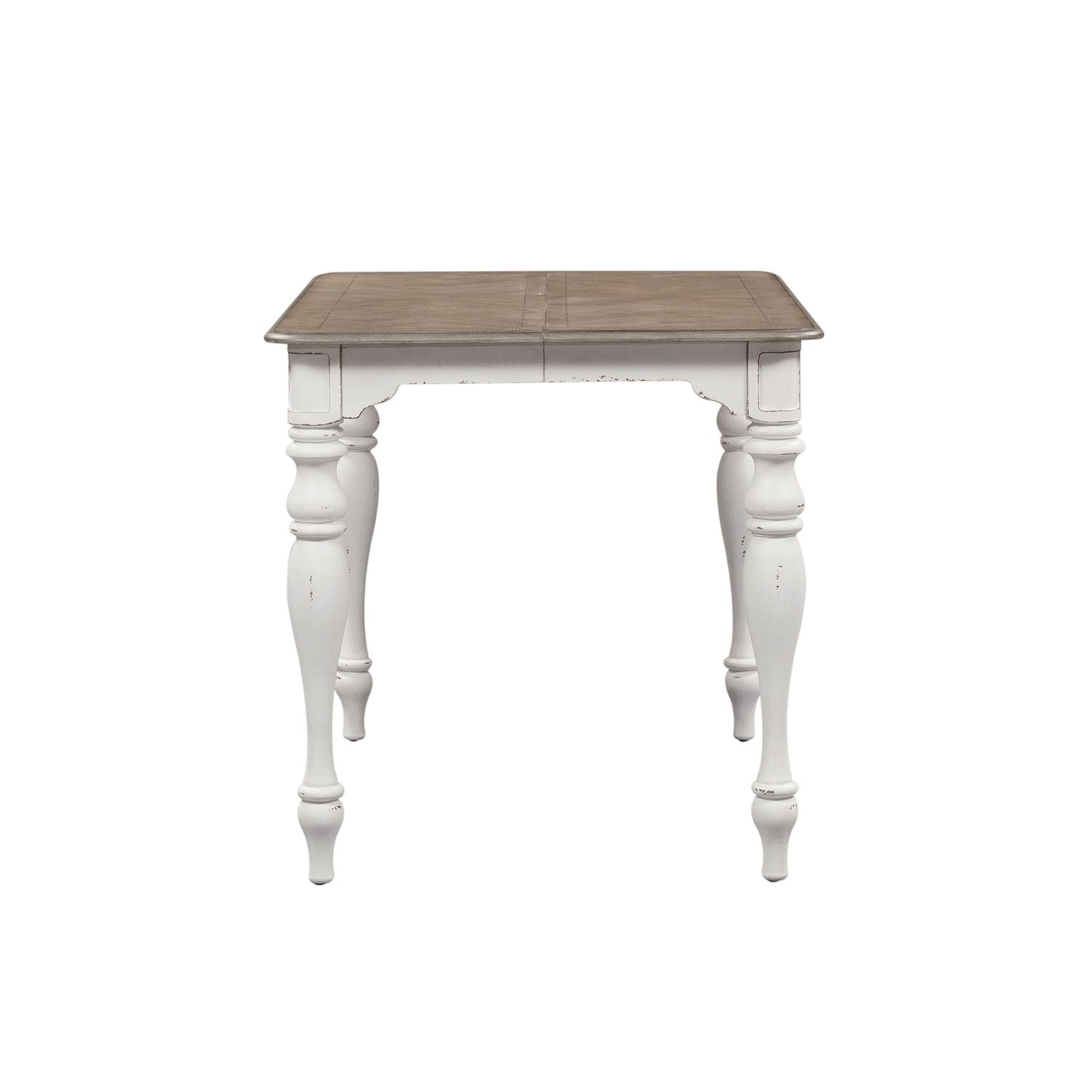 Gather in style with the Magnolia Manor gathering table. Crafted of poplar solids with white oak and birch veneers, this piece features the perfect blend of European design, one 18" removeable leaf to easily accommodate guests or a large family, fancy face top finished in a weathered brown with whitewash, softly rounded corners, and is anchored by heavy turned legs. Warm antique finishes and artistic distressing along with grand scale create a piece to be passed to generations.