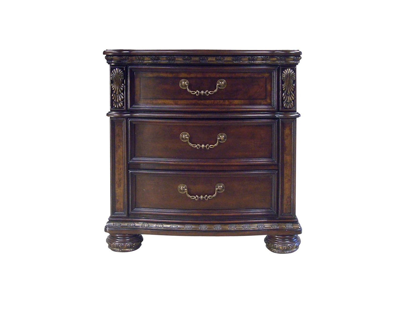 Large-scaled yet romantic bedroom collection from Steve Silver Company. The Poster bed is available in king or queen sizes and is complemented by several options in storage pieces. Crafted from cherry and mappa burl veneers and poplar solids, Monte Carlo features a multi-step rich, lustrous cocoa finish.