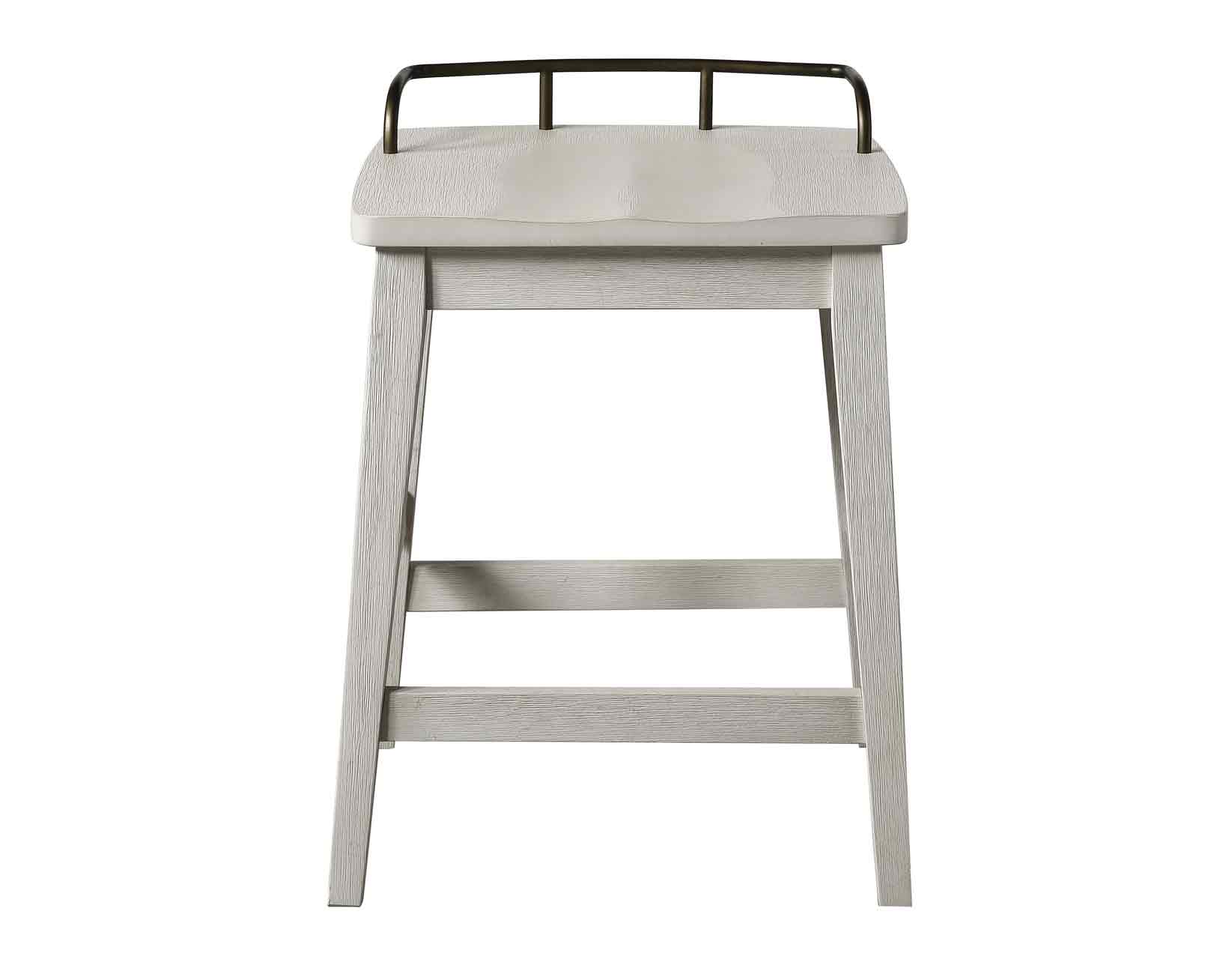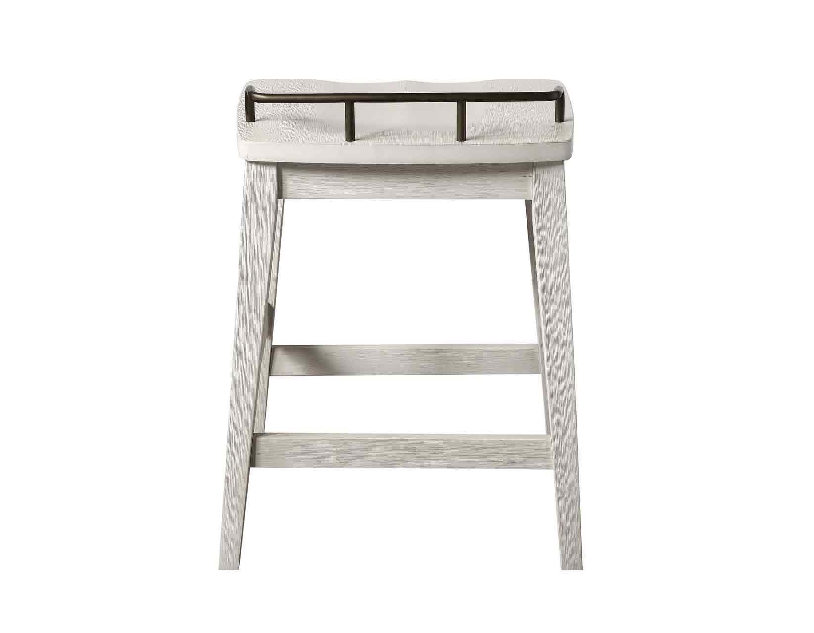 Kitchen Counter Stool constructed of Asian Hardwood solids and built to last with front and side stretchers and shaped seat for the most comfortable natural seating around. The Pendleton Counter Stool has a lustrous Ivory finish and features an oil-rubbed brass galley rail for a heritage farmhouse look.